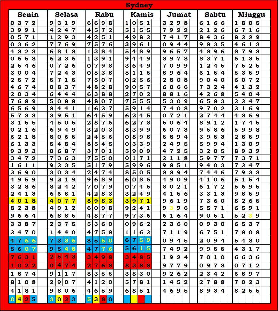 TABEL DATA SYDNEY 6D VERSI HARIAN |