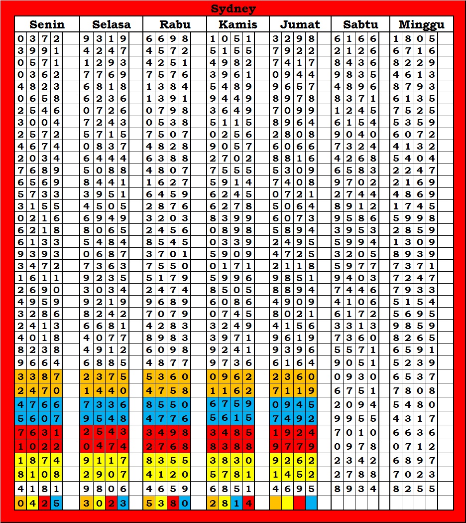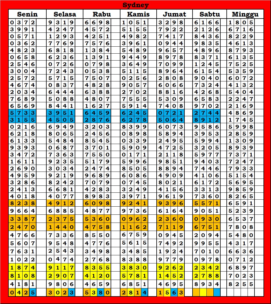 TABEL DATA SYDNEY 6D VERSI HARIAN |