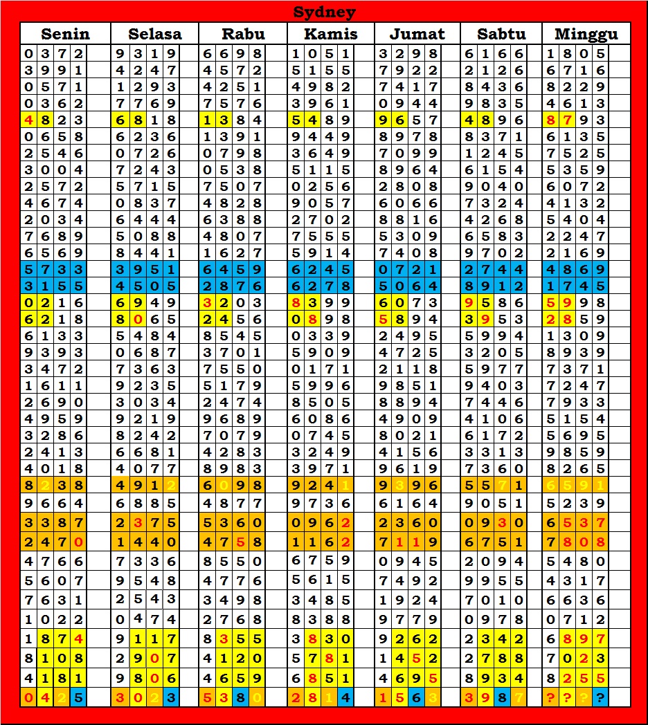 TABEL DATA SYDNEY 6D VERSI HARIAN |