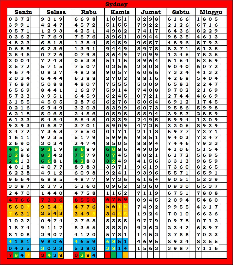 TABEL DATA SYDNEY 6D VERSI HARIAN |