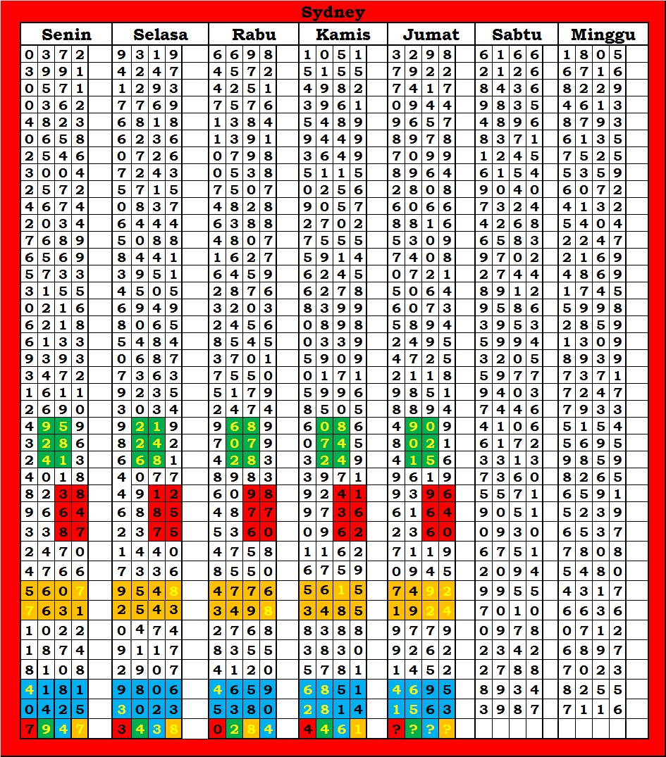 MASTER SYDNEY Rabu, 08-10-2025 Merupakan Prediksi Otomatis yang menggabungkan Metode Kalender Togel Dengan Rumus-rumus kontrol yang sudah terbukti keakuratanya.Gunakan Aplikasi Rekap untuk mendapatkan LN TOP. Harap Maklum Jika kadang meleset MASTER SYDNEY kita. Jadikan ini sebagai perbandingan saja dan tetap UPS