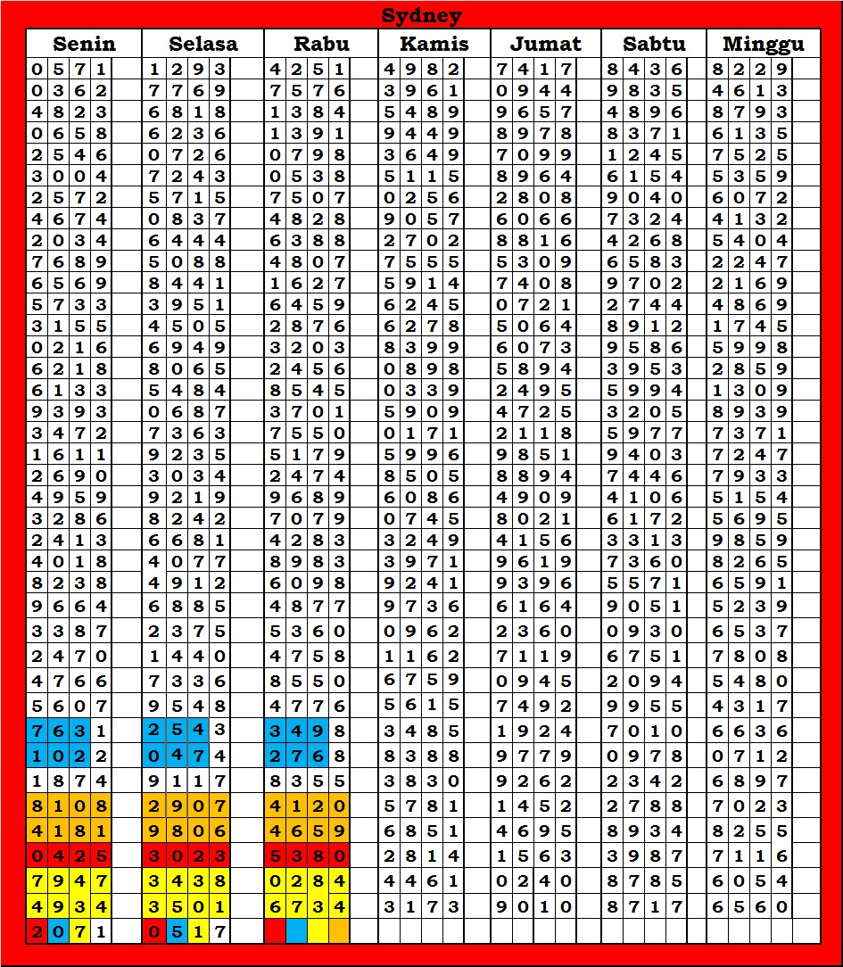 TABEL DATA SYDNEY 6D VERSI HARIAN |