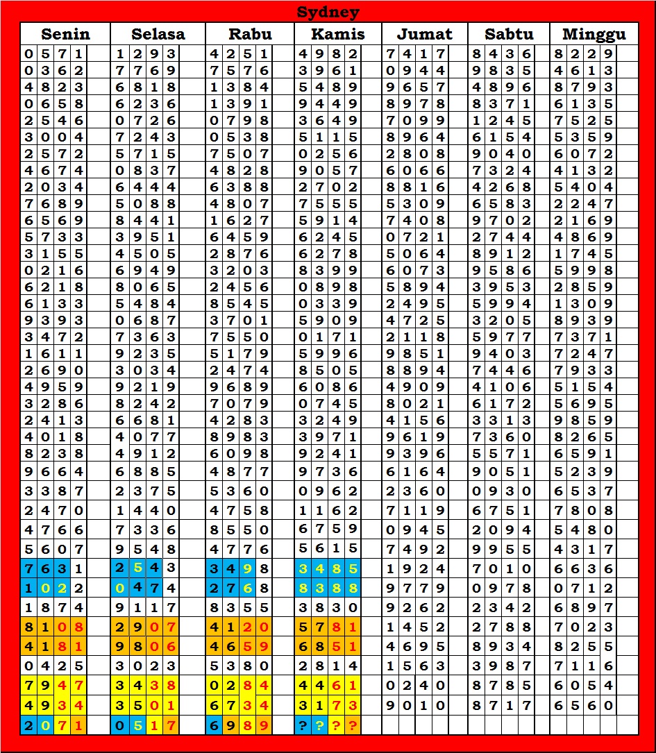 TABEL DATA SYDNEY 6D VERSI HARIAN |