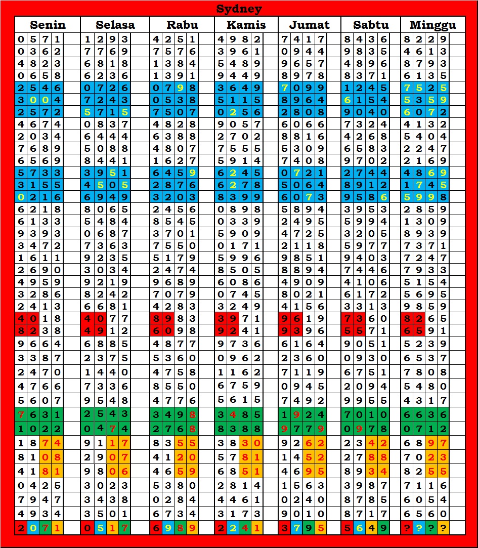 TABEL DATA SYDNEY 6D VERSI HARIAN |