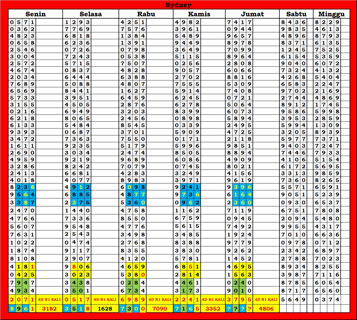 TABEL DATA SYDNEY 6D VERSI HARIAN |
