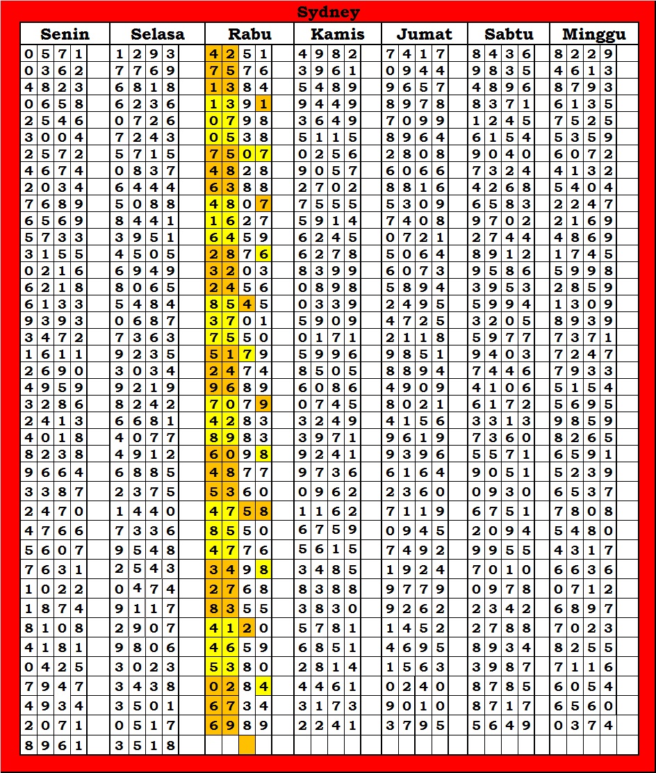 TABEL DATA SYDNEY VERSI 4D TAHUN 2009 HINGGA SEKARANG |