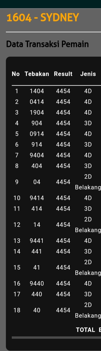 Angka Mati berdasarkan kepala & ekor harian16 17 18 19 14 56 57 58 59 54 66 67 68 69 64 76 77 78 79 74 96 97 98 99 94