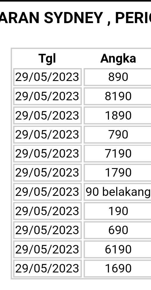 TABEL DATA SYDNEY 6D VERSI HARIAN |