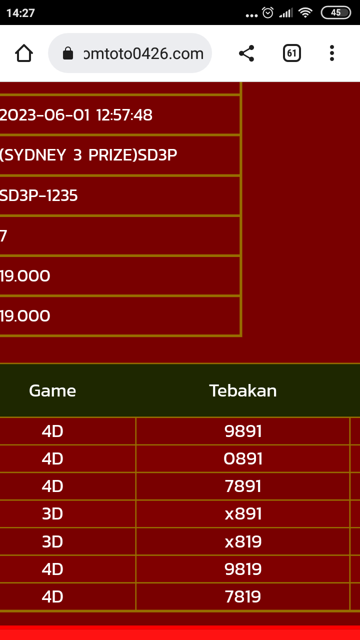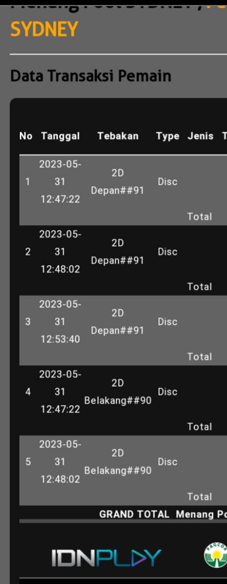 TABEL DATA SYDNEY 6D VERSI HARIAN |