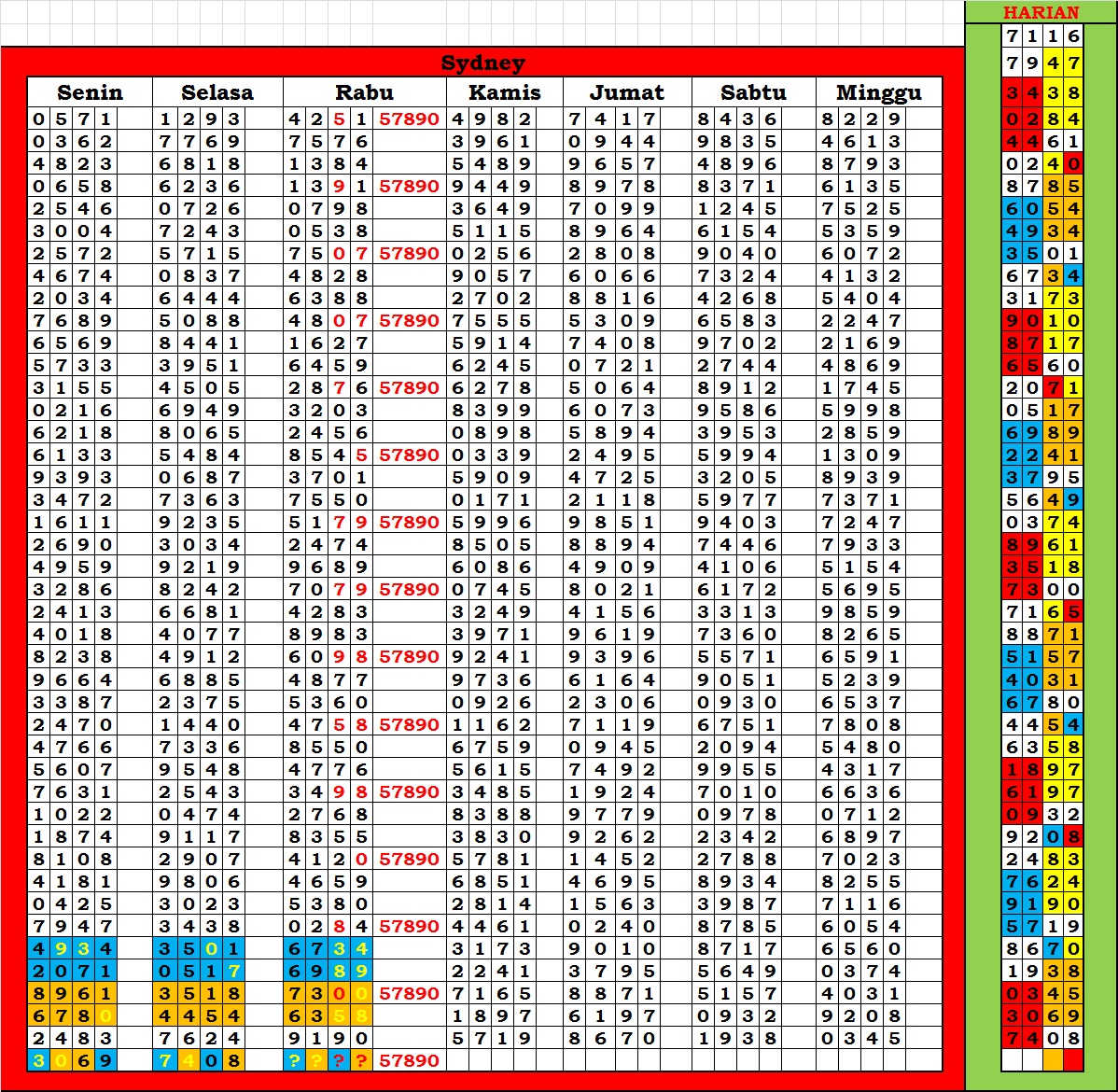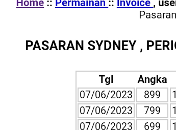 MASTER SYDNEY Selasa, 07-10-2025 Merupakan Prediksi Otomatis yang menggabungkan Metode Kalender Togel Dengan Rumus-rumus kontrol yang sudah terbukti keakuratanya.Gunakan Aplikasi Rekap untuk mendapatkan LN TOP. Harap Maklum Jika kadang meleset MASTER SYDNEY kita. Jadikan ini sebagai perbandingan saja dan tetap UPS