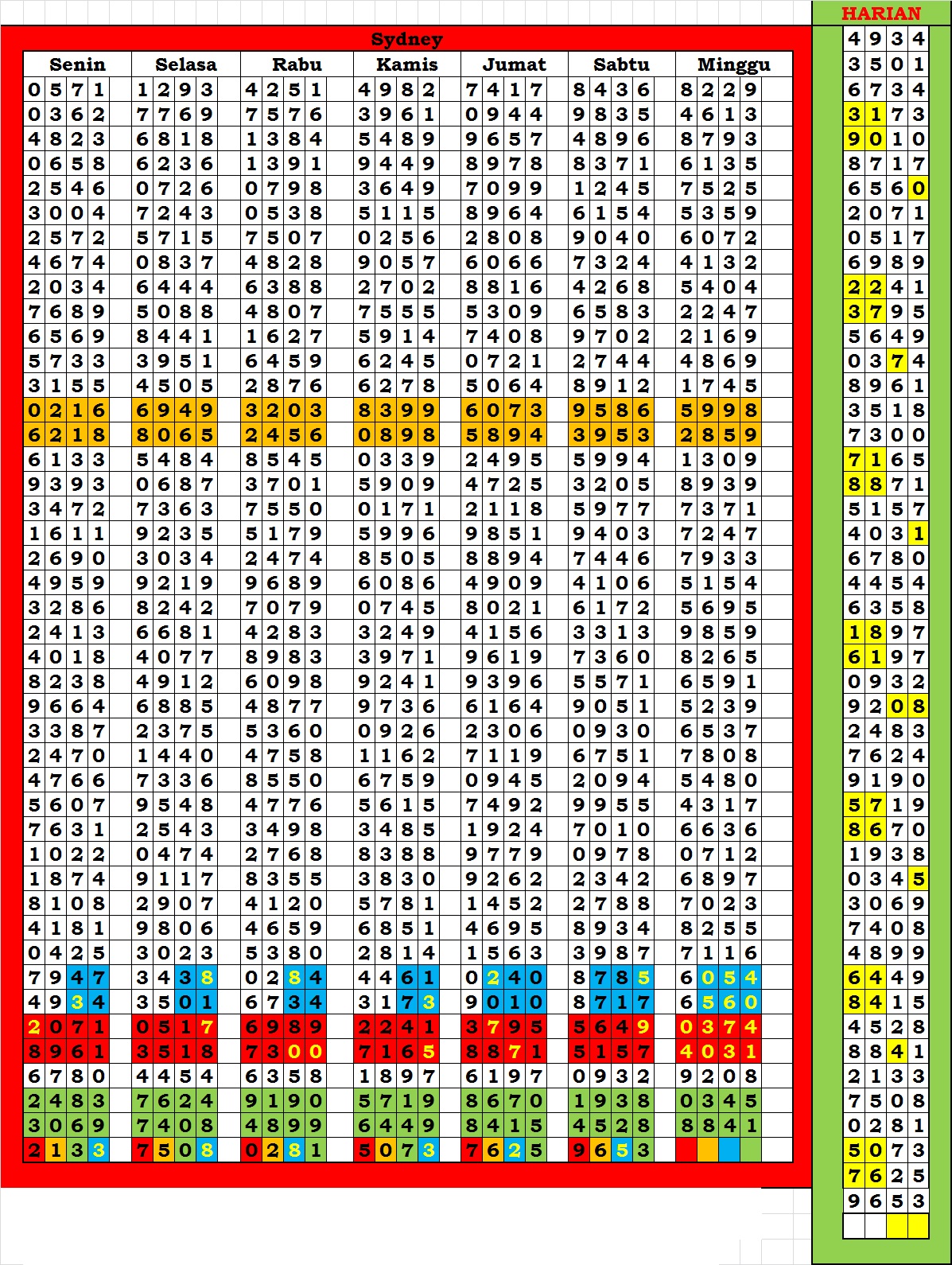 TABEL DATA SYDNEY 6D VERSI HARIAN |