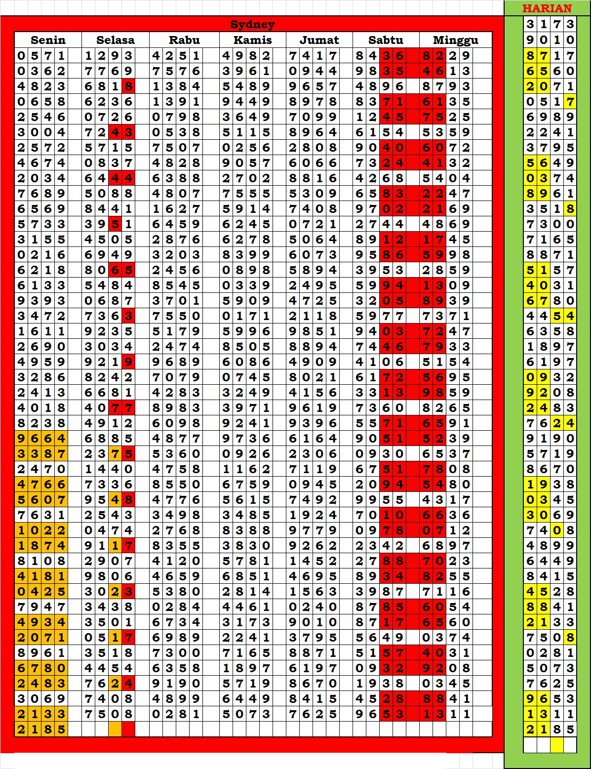 TABEL DATA SYDNEY 6D VERSI HARIAN |
