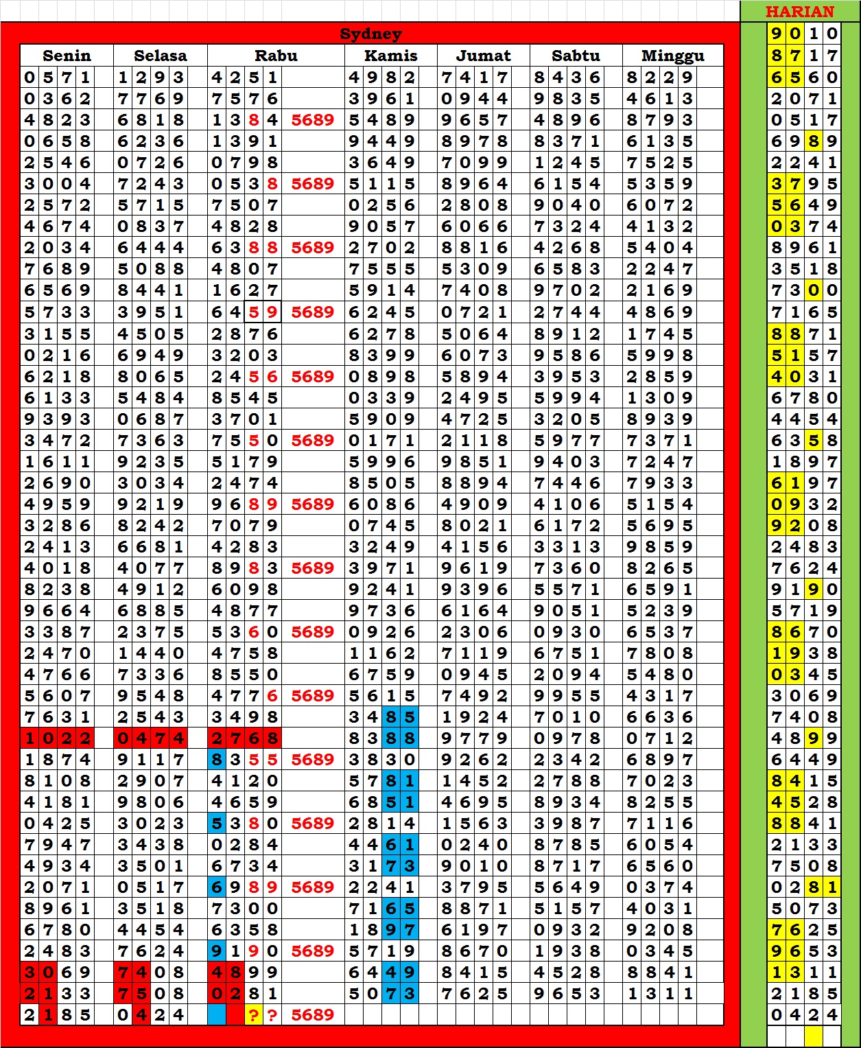 TABEL DATA SYDNEY 6D VERSI HARIAN |