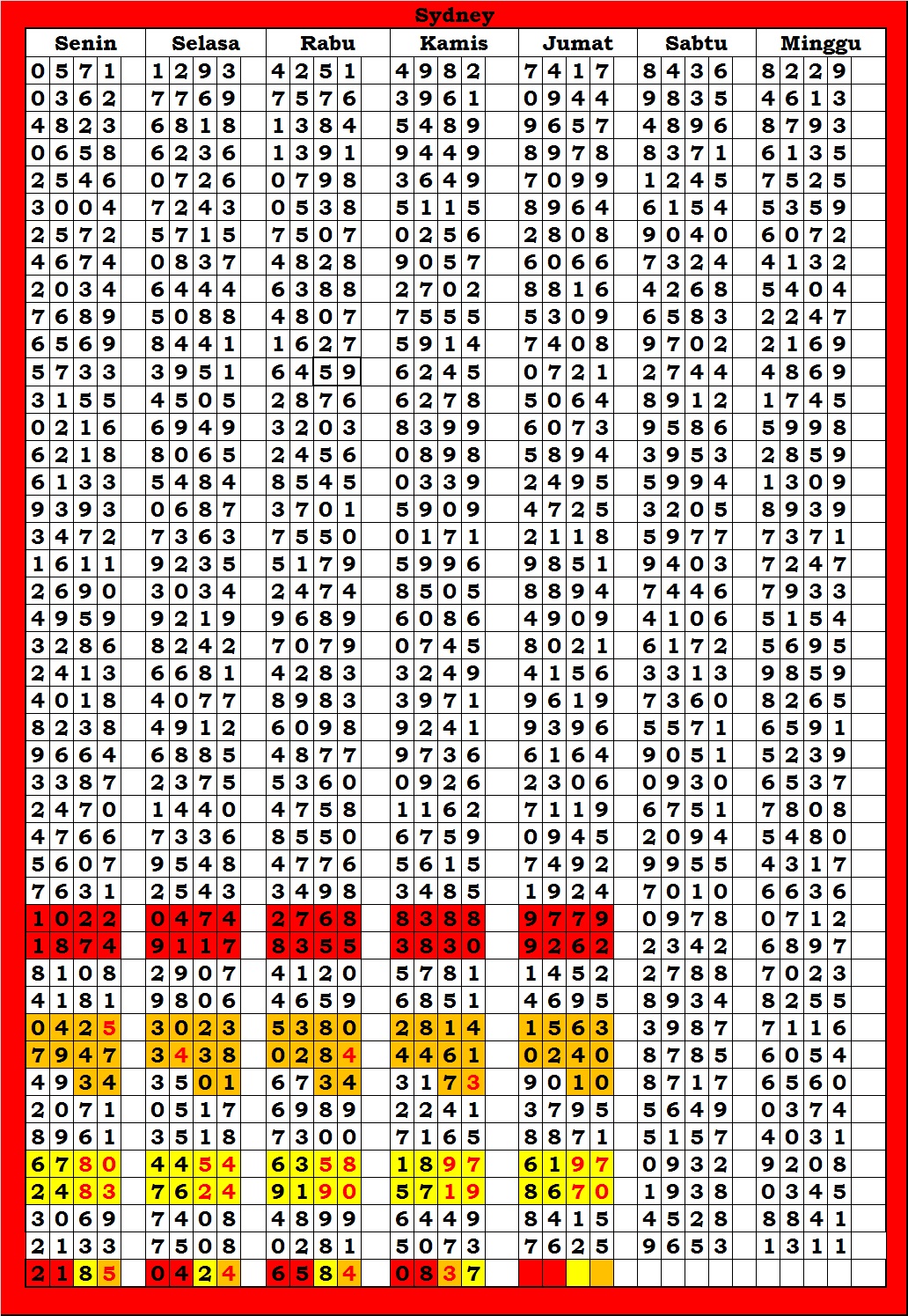 TABEL DATA SYDNEY 6D VERSI HARIAN |