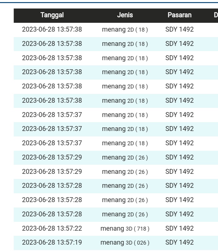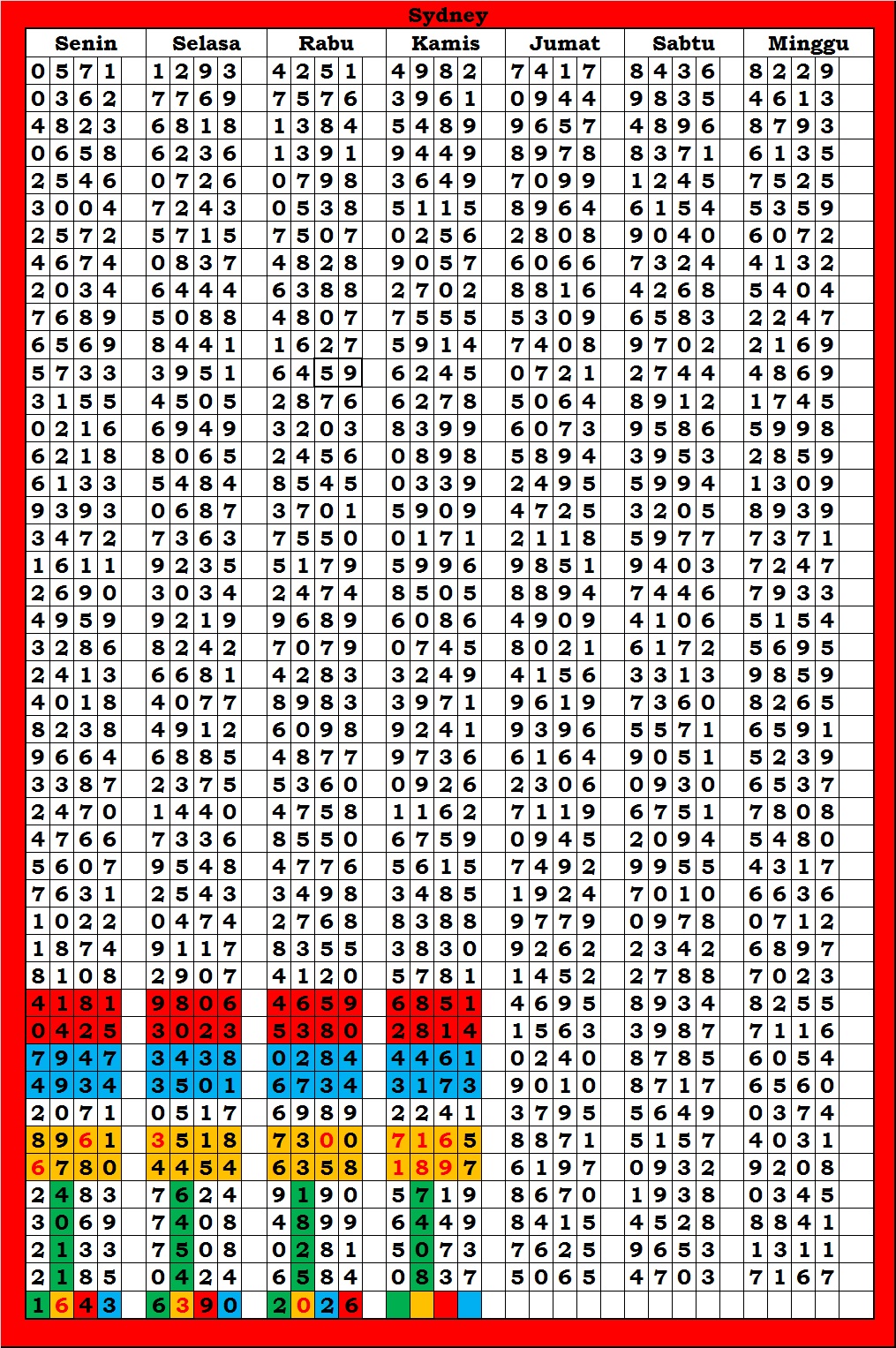 TABEL DATA SYDNEY 6D VERSI HARIAN |