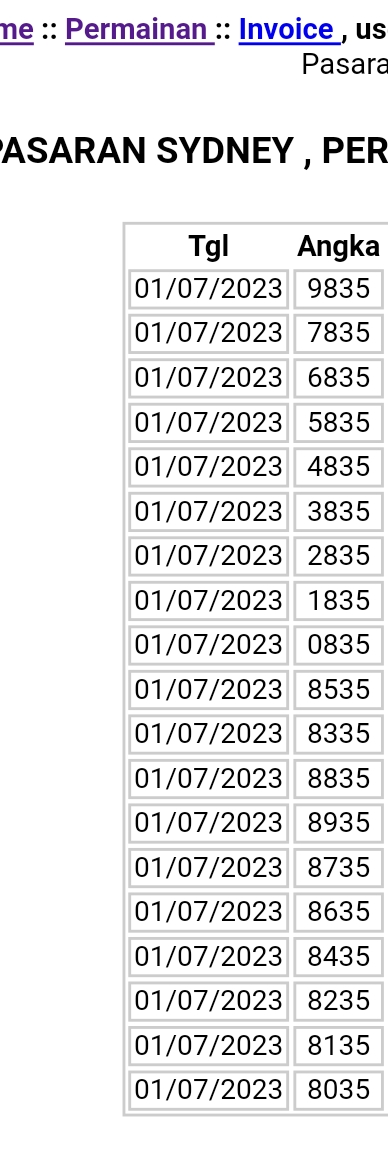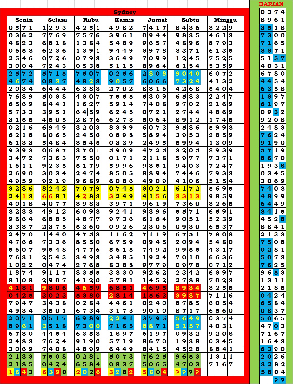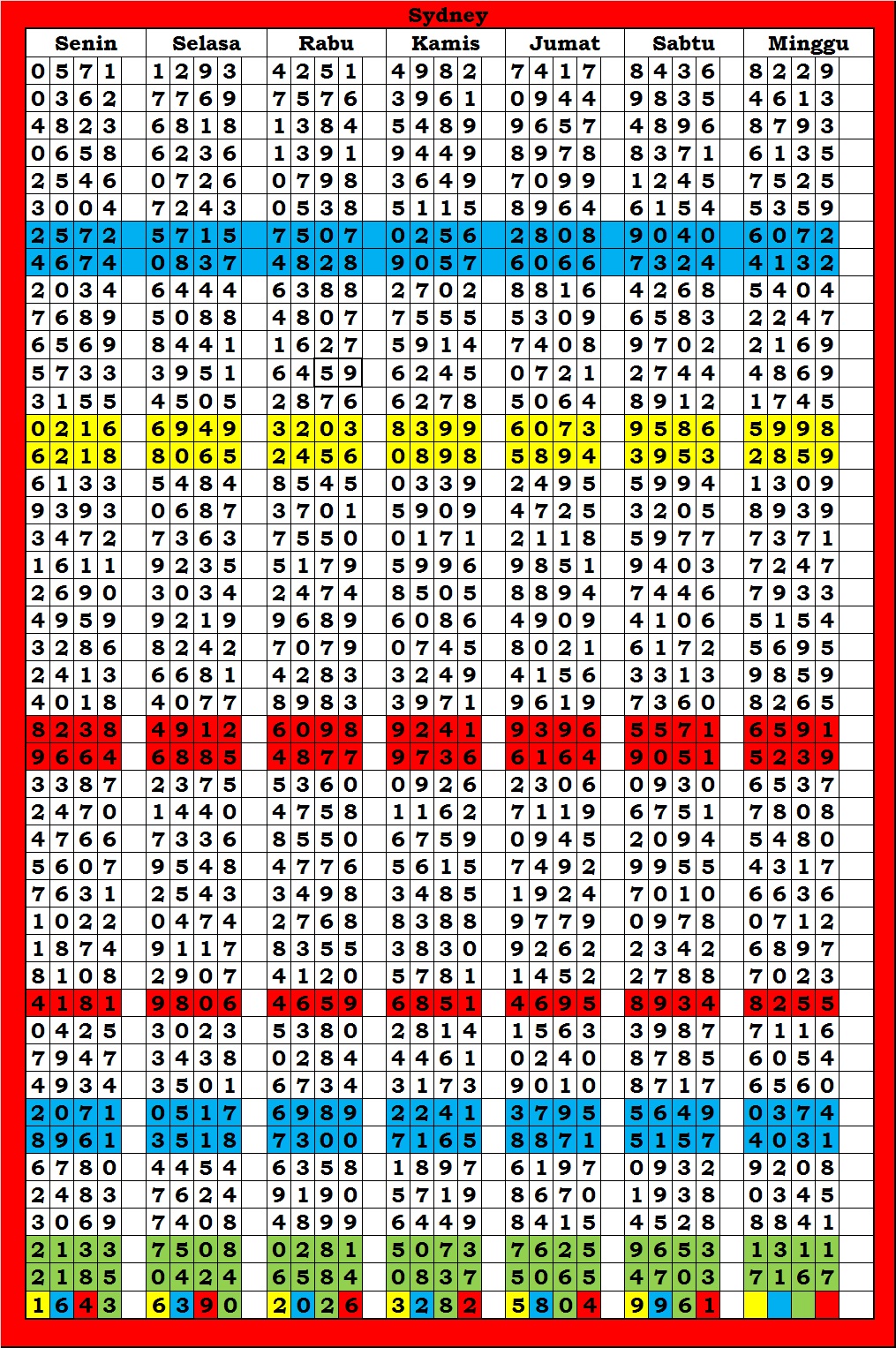 MASTER SYDNEY Minggu, 05-10-2025 Merupakan Prediksi Otomatis yang menggabungkan Metode Kalender Togel Dengan Rumus-rumus kontrol yang sudah terbukti keakuratanya.Gunakan Aplikasi Rekap untuk mendapatkan LN TOP. Harap Maklum Jika kadang meleset MASTER SYDNEY kita. Jadikan ini sebagai perbandingan saja dan tetap UPS