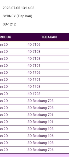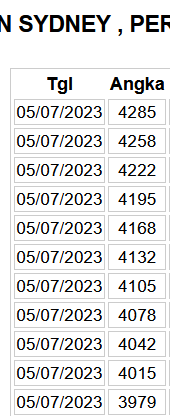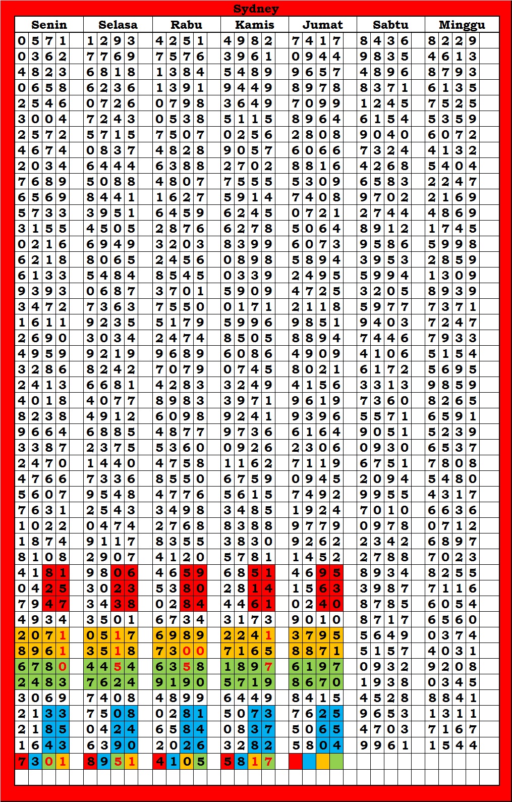 MASTER SYDNEY Minggu, 05-10-2025 Merupakan Prediksi Otomatis yang menggabungkan Metode Kalender Togel Dengan Rumus-rumus kontrol yang sudah terbukti keakuratanya.Gunakan Aplikasi Rekap untuk mendapatkan LN TOP. Harap Maklum Jika kadang meleset MASTER SYDNEY kita. Jadikan ini sebagai perbandingan saja dan tetap UPS