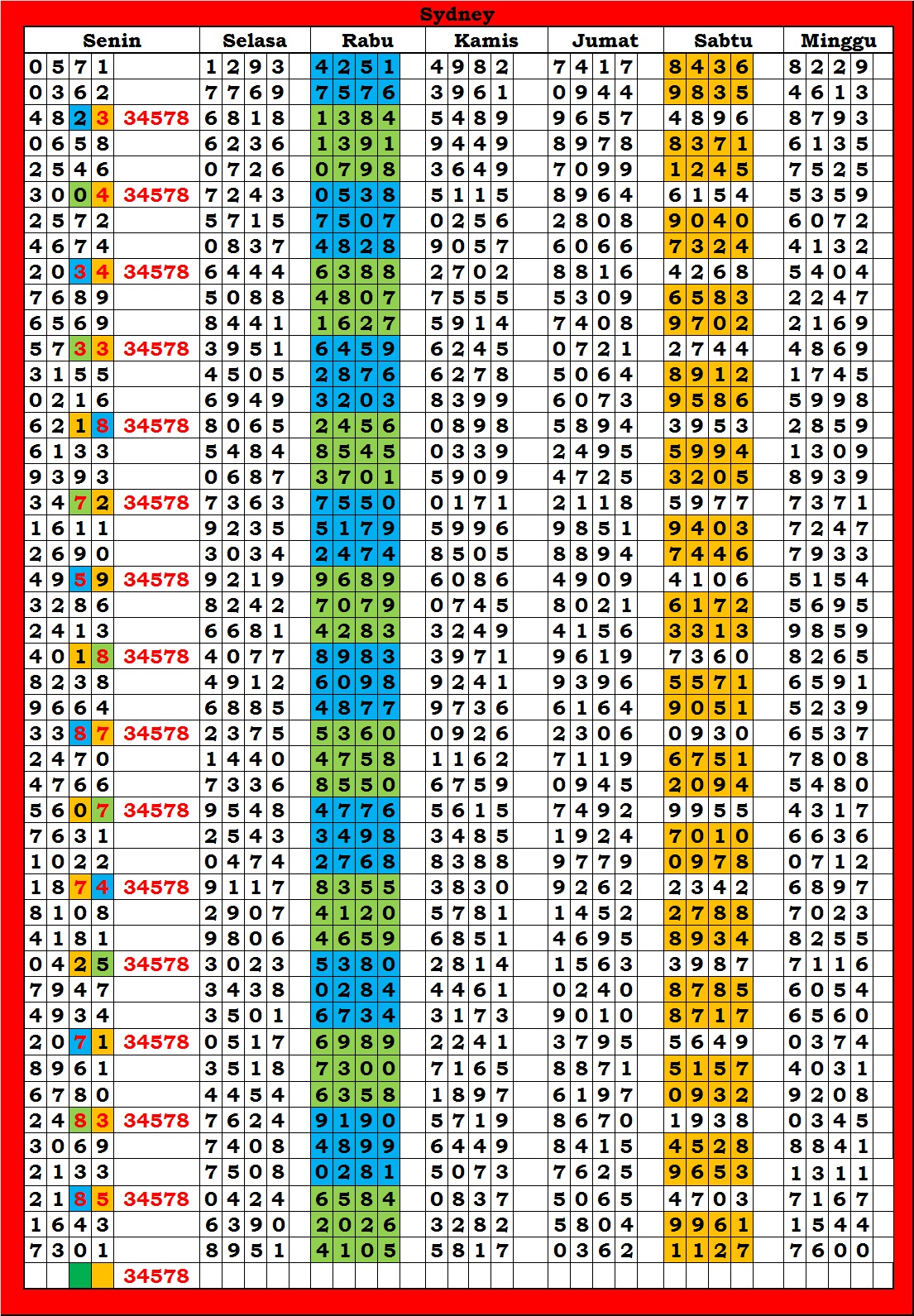 MASTER SYDNEY Minggu, 05-10-2025 Merupakan Prediksi Otomatis yang menggabungkan Metode Kalender Togel Dengan Rumus-rumus kontrol yang sudah terbukti keakuratanya.Gunakan Aplikasi Rekap untuk mendapatkan LN TOP. Harap Maklum Jika kadang meleset MASTER SYDNEY kita. Jadikan ini sebagai perbandingan saja dan tetap UPS
