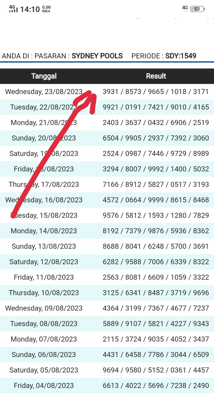 MASTER SYDNEY Minggu, 05-10-2025 Merupakan Prediksi Otomatis yang menggabungkan Metode Kalender Togel Dengan Rumus-rumus kontrol yang sudah terbukti keakuratanya.Gunakan Aplikasi Rekap untuk mendapatkan LN TOP. Harap Maklum Jika kadang meleset MASTER SYDNEY kita. Jadikan ini sebagai perbandingan saja dan tetap UPS