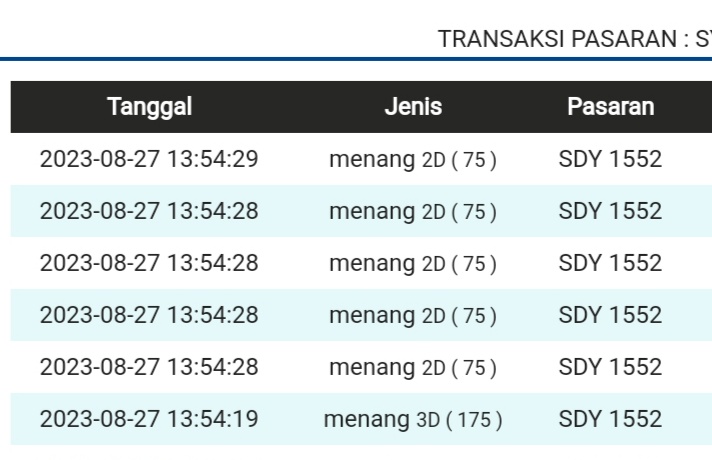 MASTER SYDNEY Minggu, 05-10-2025 Merupakan Prediksi Otomatis yang menggabungkan Metode Kalender Togel Dengan Rumus-rumus kontrol yang sudah terbukti keakuratanya.Gunakan Aplikasi Rekap untuk mendapatkan LN TOP. Harap Maklum Jika kadang meleset MASTER SYDNEY kita. Jadikan ini sebagai perbandingan saja dan tetap UPS