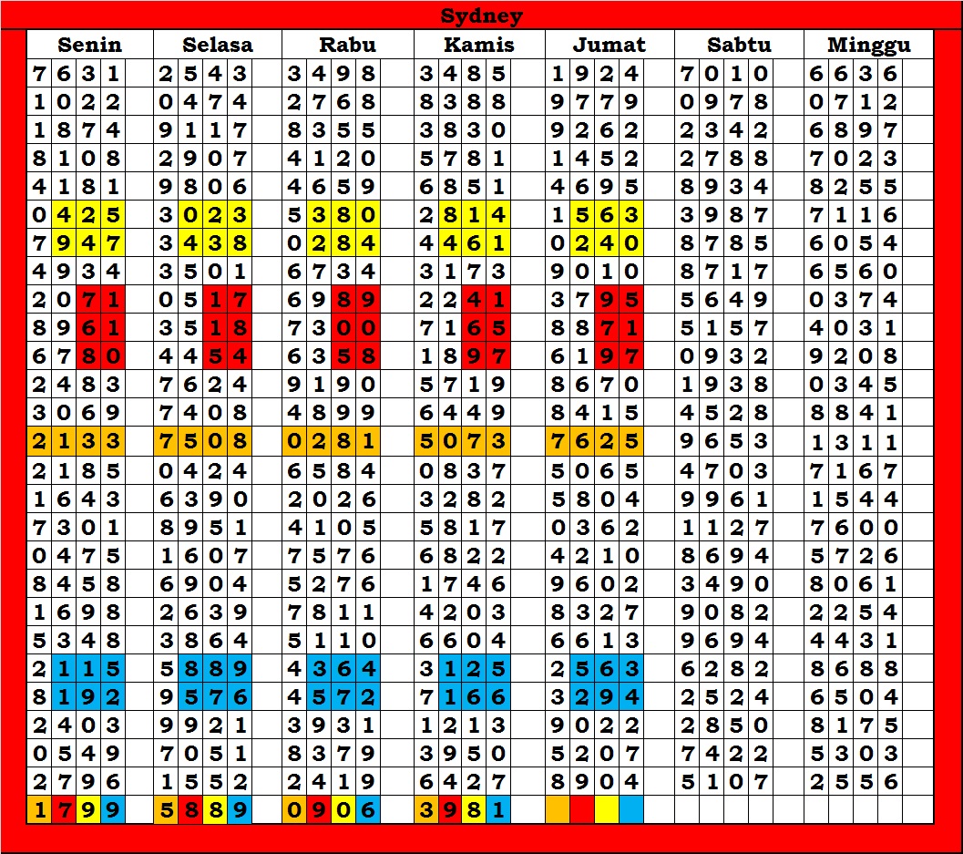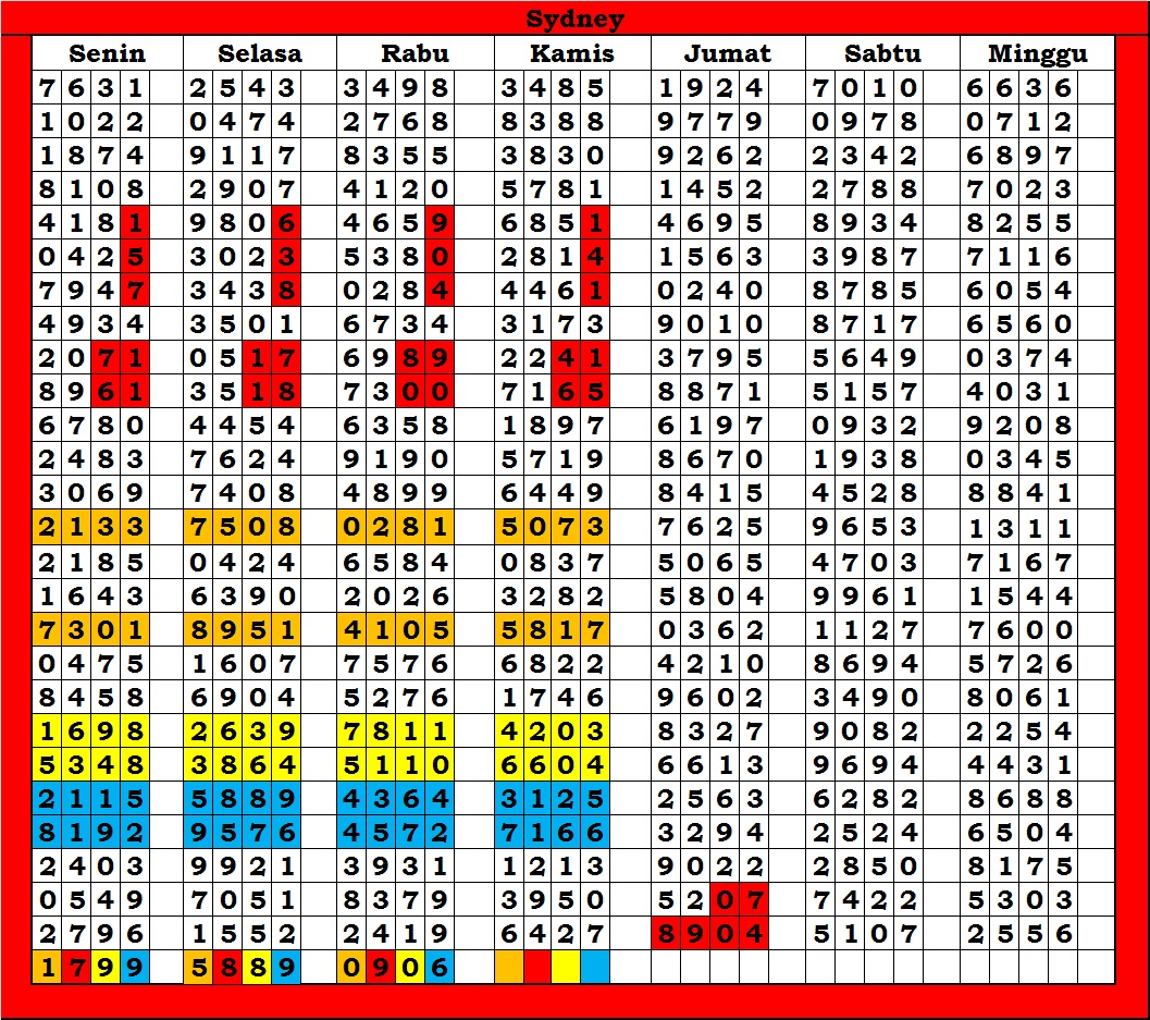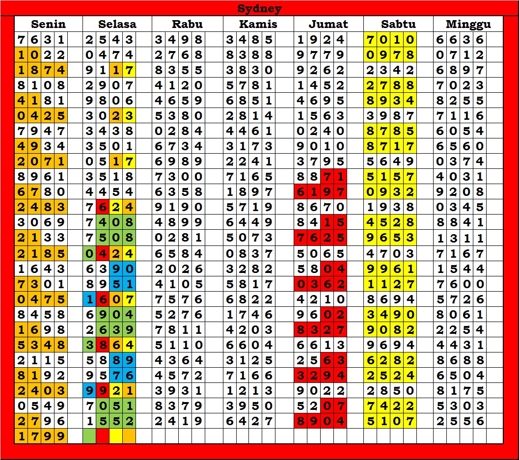 MASTER SYDNEY Sabtu, 04-10-2025 Merupakan Prediksi Otomatis yang menggabungkan Metode Kalender Togel Dengan Rumus-rumus kontrol yang sudah terbukti keakuratanya.Gunakan Aplikasi Rekap untuk mendapatkan LN TOP. Harap Maklum Jika kadang meleset MASTER SYDNEY kita. Jadikan ini sebagai perbandingan saja dan tetap UPS