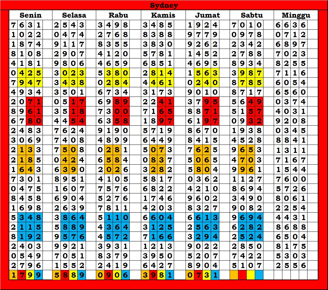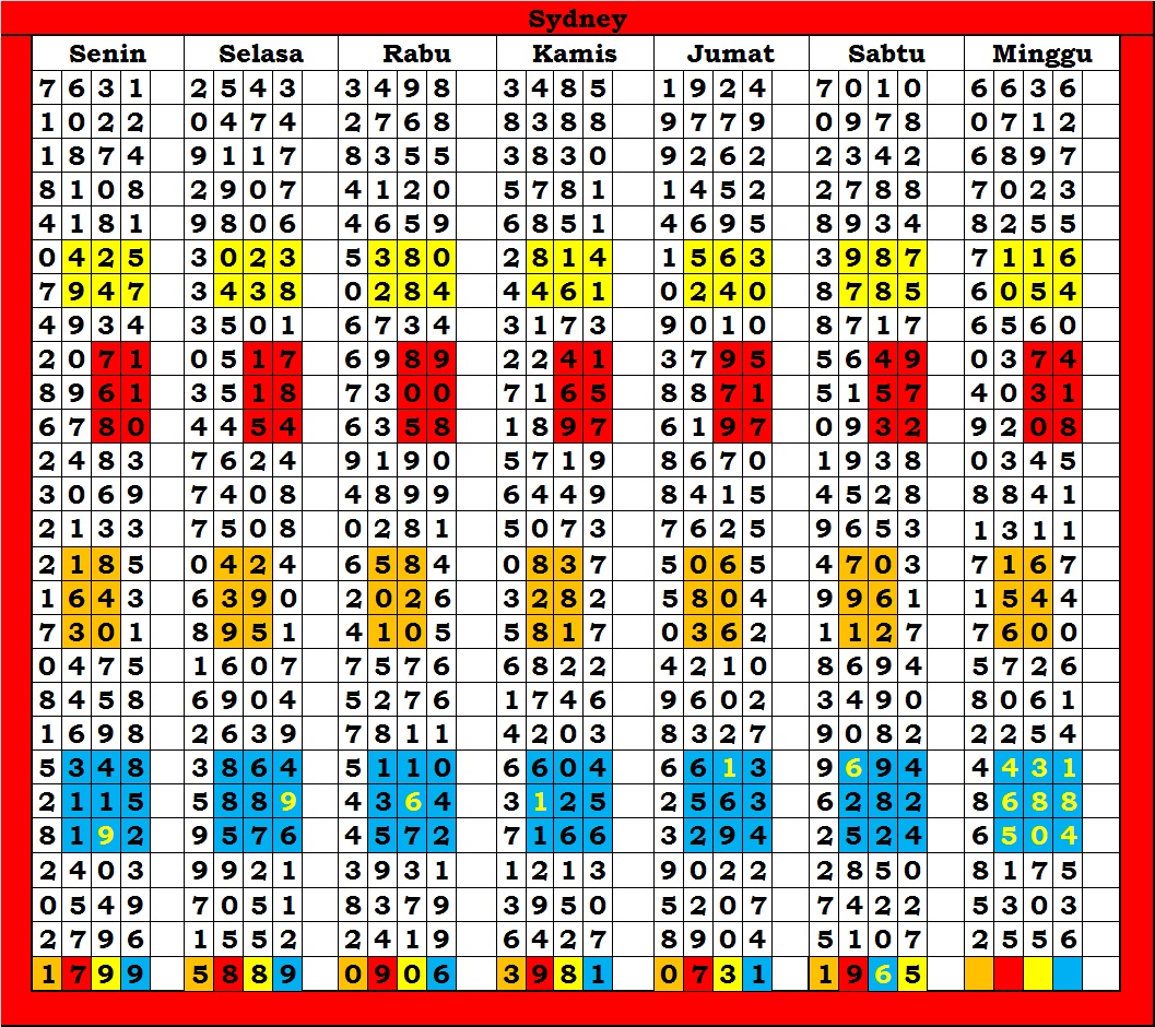 MASTER SYDNEY Sabtu, 04-10-2025 Merupakan Prediksi Otomatis yang menggabungkan Metode Kalender Togel Dengan Rumus-rumus kontrol yang sudah terbukti keakuratanya.Gunakan Aplikasi Rekap untuk mendapatkan LN TOP. Harap Maklum Jika kadang meleset MASTER SYDNEY kita. Jadikan ini sebagai perbandingan saja dan tetap UPS