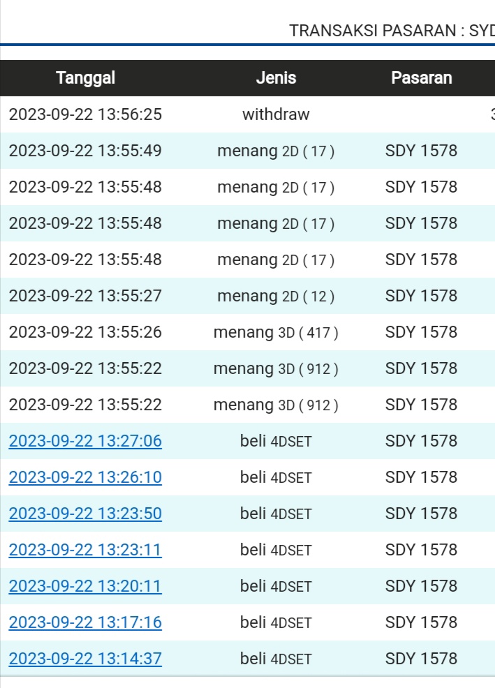 TABEL DATA SYDNEY 6D VERSI HARIAN |