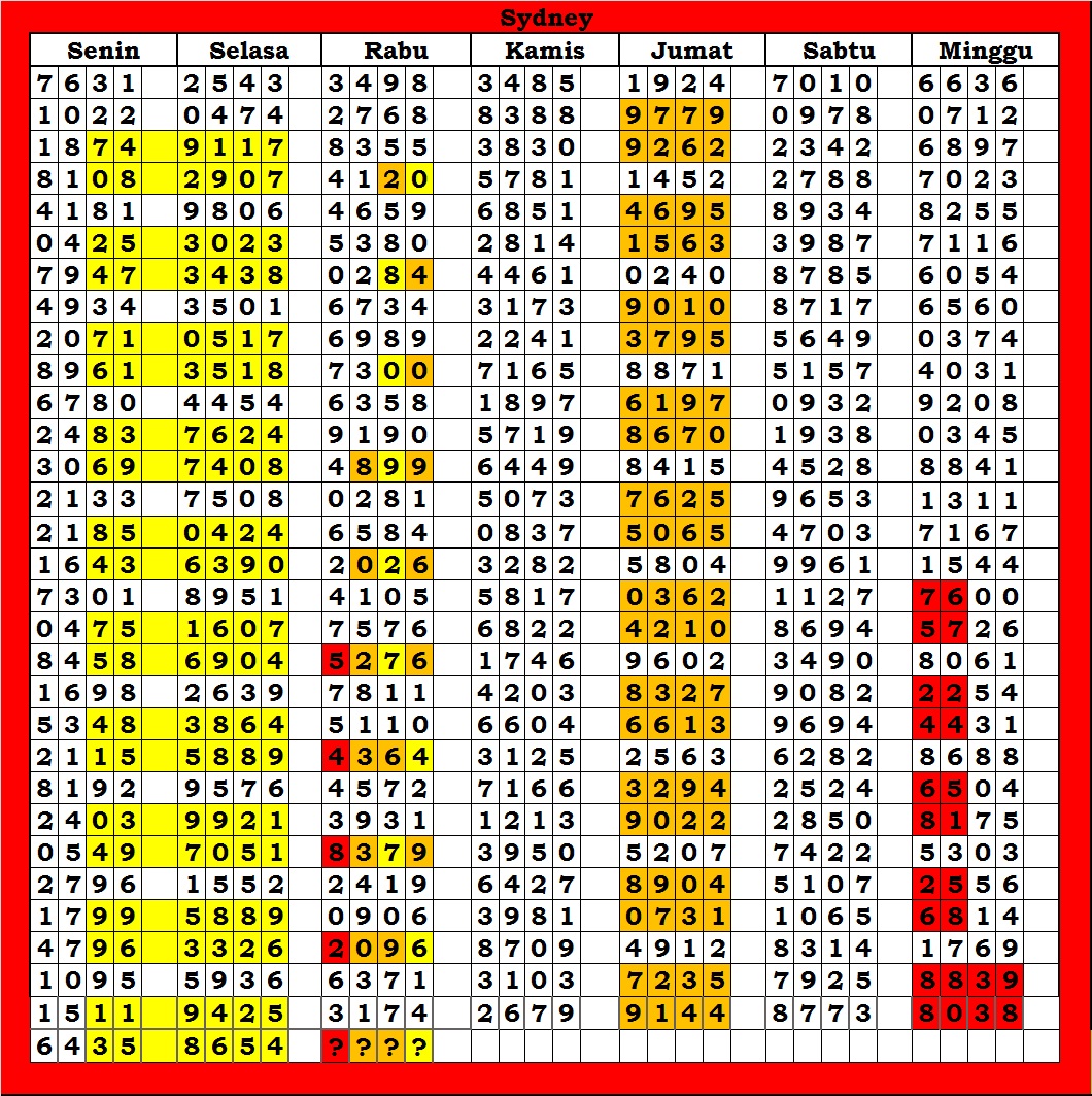 MASTER SYDNEY Sabtu, 04-10-2025 Merupakan Prediksi Otomatis yang menggabungkan Metode Kalender Togel Dengan Rumus-rumus kontrol yang sudah terbukti keakuratanya.Gunakan Aplikasi Rekap untuk mendapatkan LN TOP. Harap Maklum Jika kadang meleset MASTER SYDNEY kita. Jadikan ini sebagai perbandingan saja dan tetap UPS