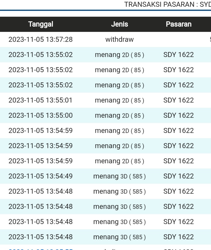 TABEL DATA SYDNEY 6D VERSI HARIAN |