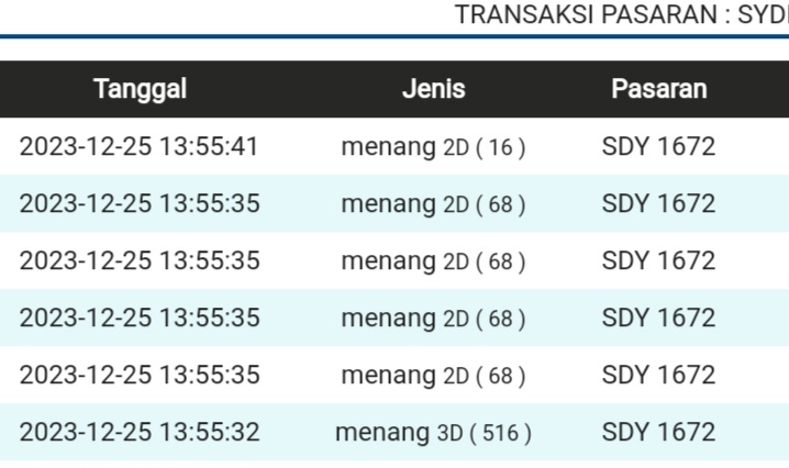 TABEL DATA SYDNEY 6D VERSI HARIAN |