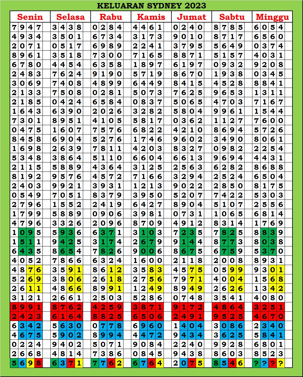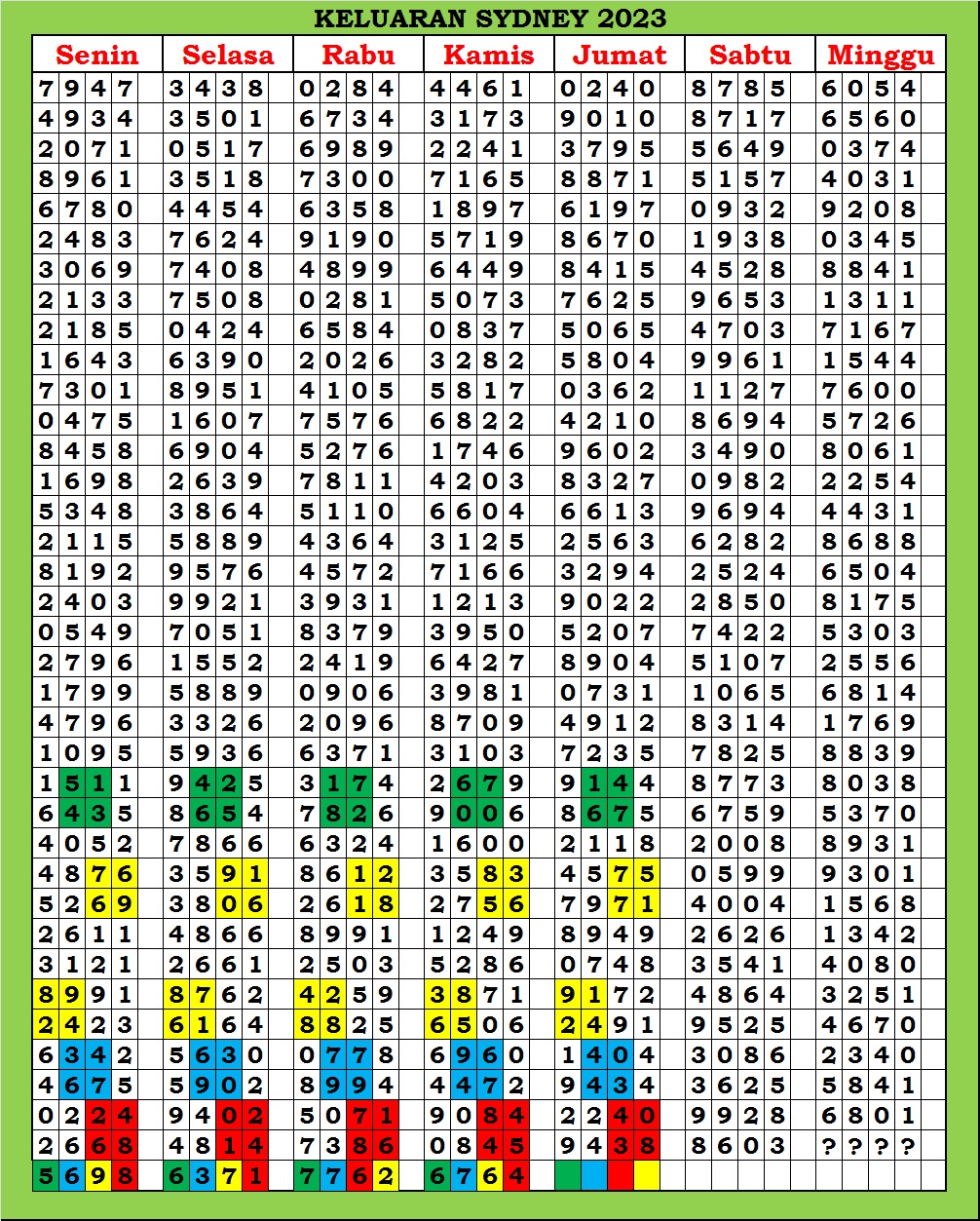 MASTER SYDNEY Sabtu, 04-10-2025 Merupakan Prediksi Otomatis yang menggabungkan Metode Kalender Togel Dengan Rumus-rumus kontrol yang sudah terbukti keakuratanya.Gunakan Aplikasi Rekap untuk mendapatkan LN TOP. Harap Maklum Jika kadang meleset MASTER SYDNEY kita. Jadikan ini sebagai perbandingan saja dan tetap UPS