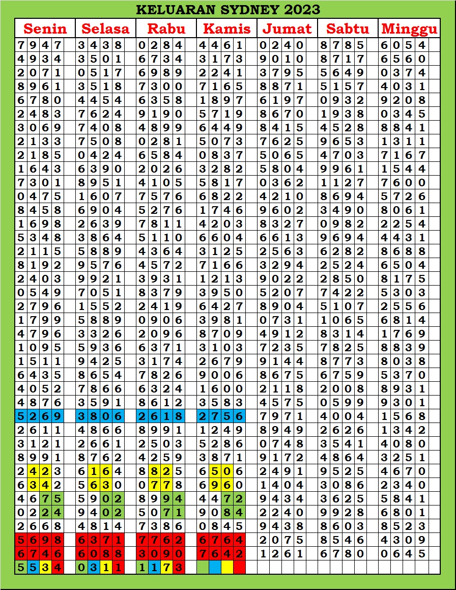 TABEL DATA SYDNEY 6D VERSI HARIAN |