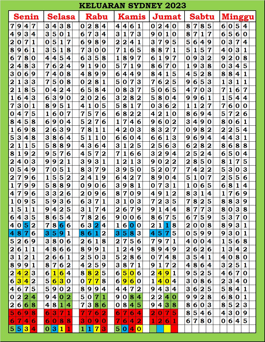 TABEL DATA SYDNEY 6D VERSI HARIAN |