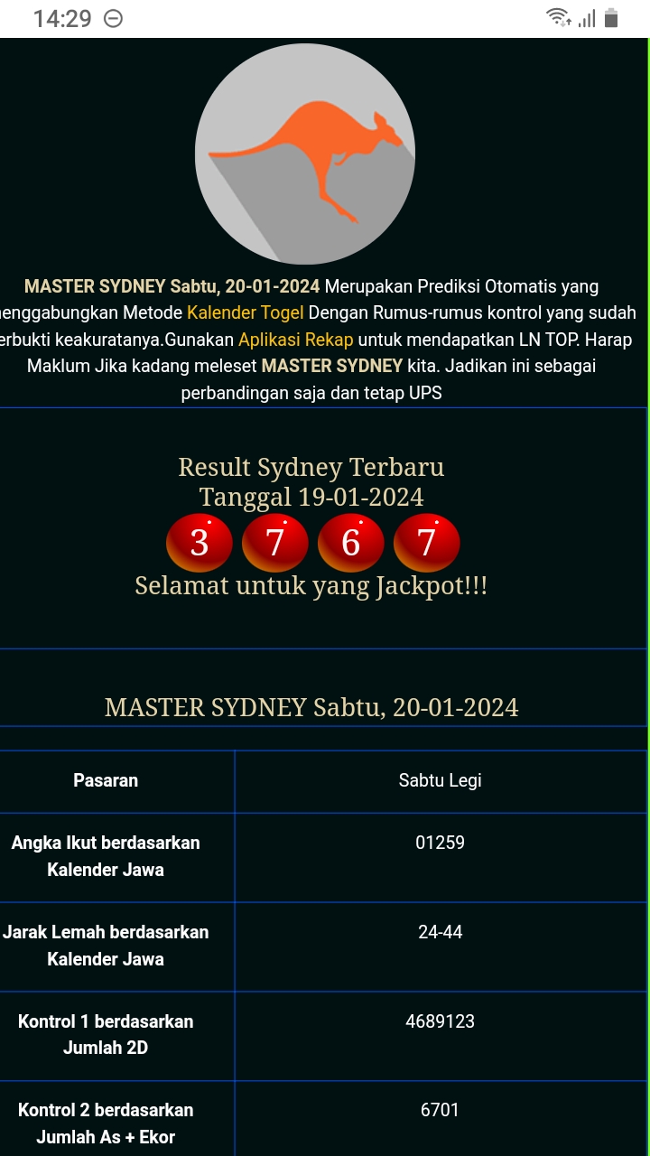MASTER SYDNEY Selasa, 30-09-2025 Merupakan Prediksi Otomatis yang menggabungkan Metode Kalender Togel Dengan Rumus-rumus kontrol yang sudah terbukti keakuratanya.Gunakan Aplikasi Rekap untuk mendapatkan LN TOP. Harap Maklum Jika kadang meleset MASTER SYDNEY kita. Jadikan ini sebagai perbandingan saja dan tetap UPS