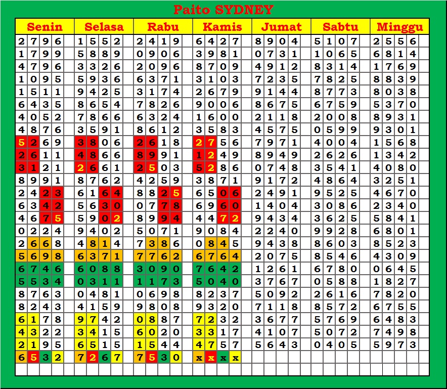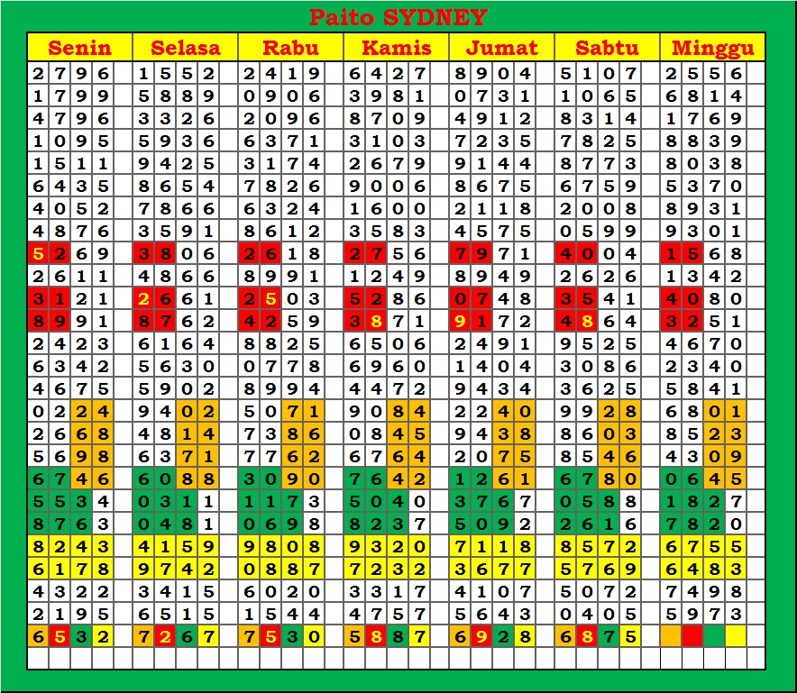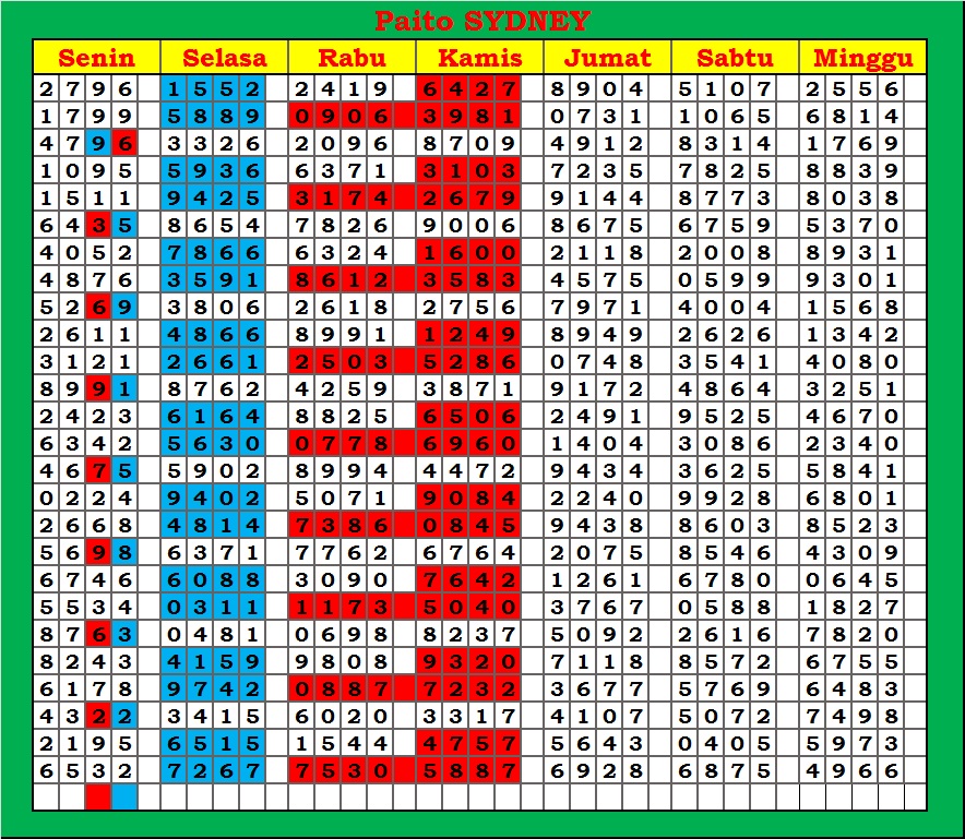 MASTER SYDNEY Sabtu, 04-10-2025 Merupakan Prediksi Otomatis yang menggabungkan Metode Kalender Togel Dengan Rumus-rumus kontrol yang sudah terbukti keakuratanya.Gunakan Aplikasi Rekap untuk mendapatkan LN TOP. Harap Maklum Jika kadang meleset MASTER SYDNEY kita. Jadikan ini sebagai perbandingan saja dan tetap UPS
