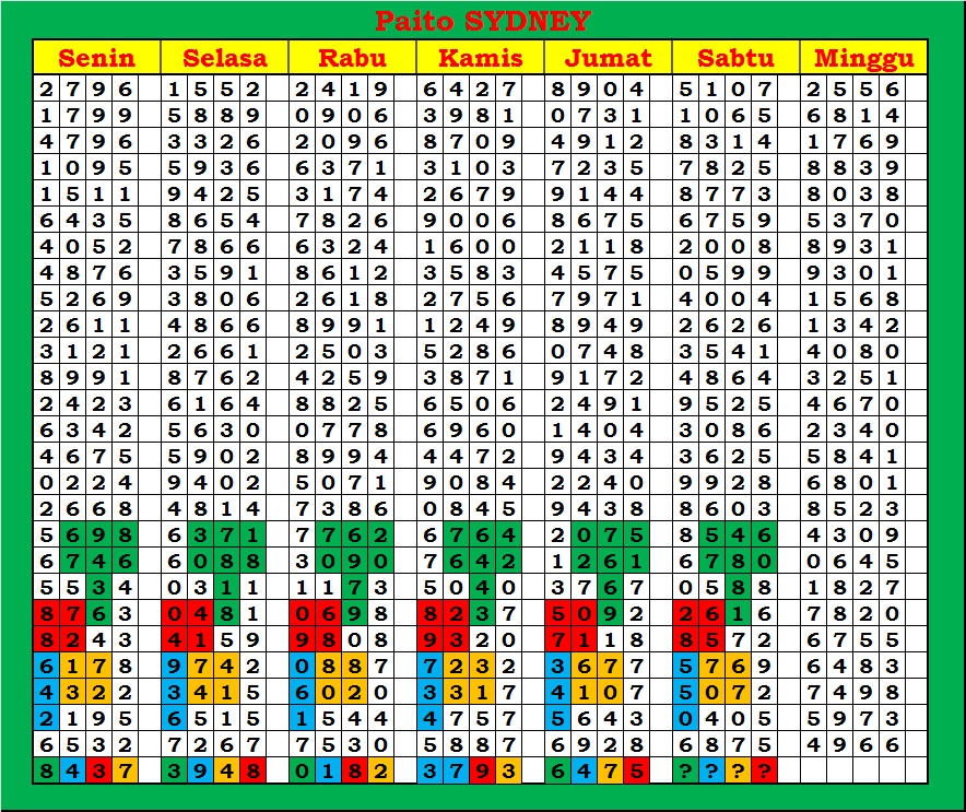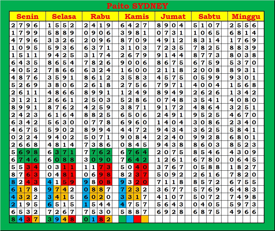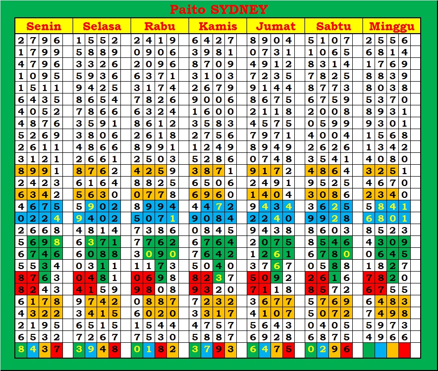 PAITO WARNA SYDNEY 4D HARIAN |