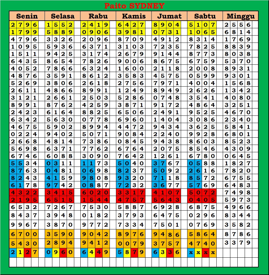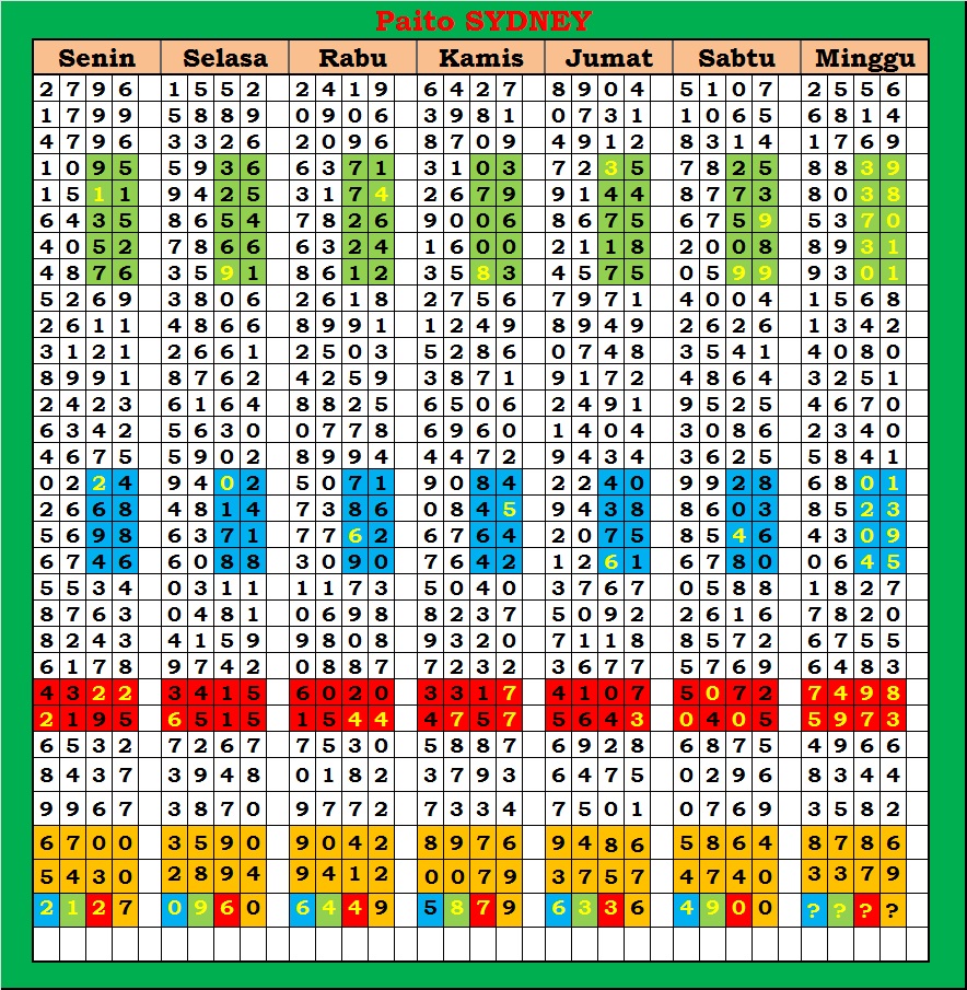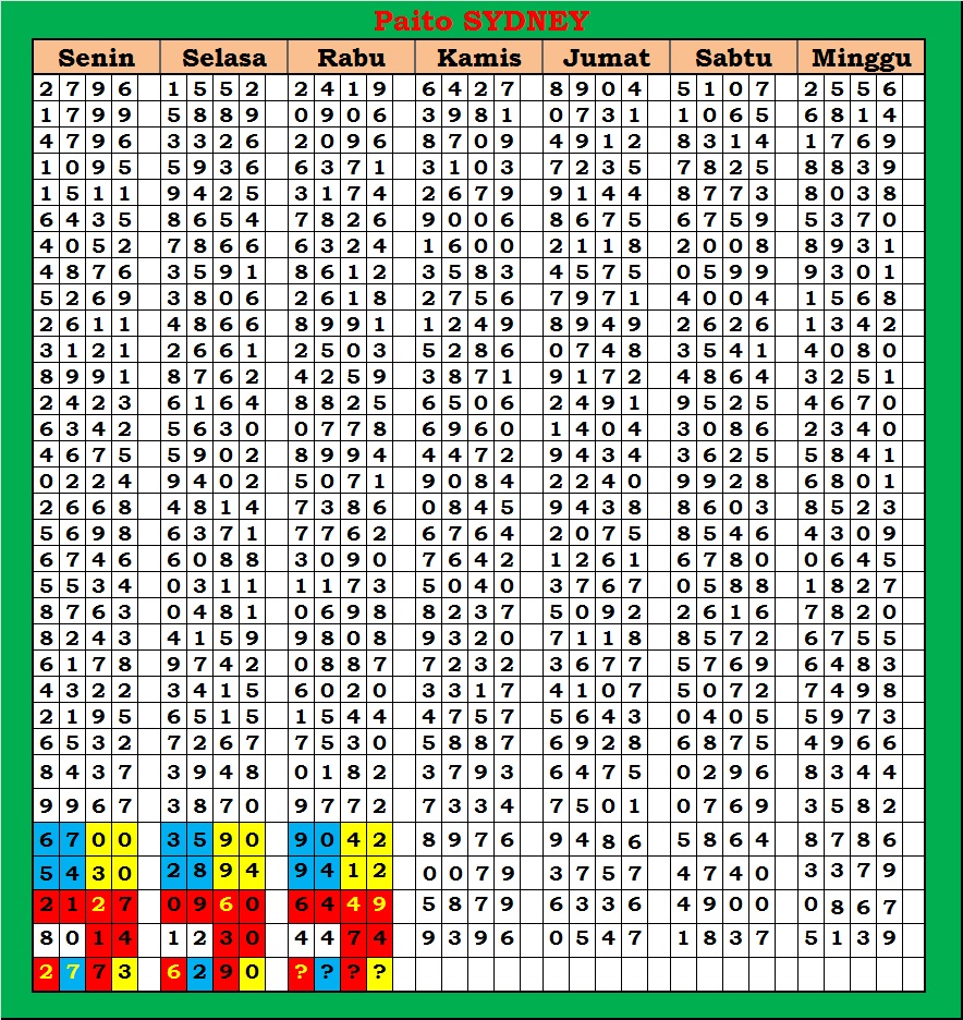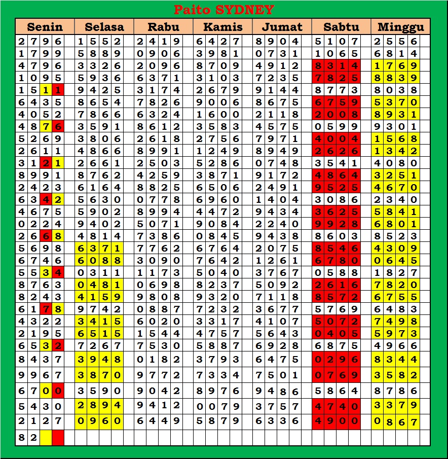 MASTER SYDNEY Sabtu, 04-10-2025 Merupakan Prediksi Otomatis yang menggabungkan Metode Kalender Togel Dengan Rumus-rumus kontrol yang sudah terbukti keakuratanya.Gunakan Aplikasi Rekap untuk mendapatkan LN TOP. Harap Maklum Jika kadang meleset MASTER SYDNEY kita. Jadikan ini sebagai perbandingan saja dan tetap UPS