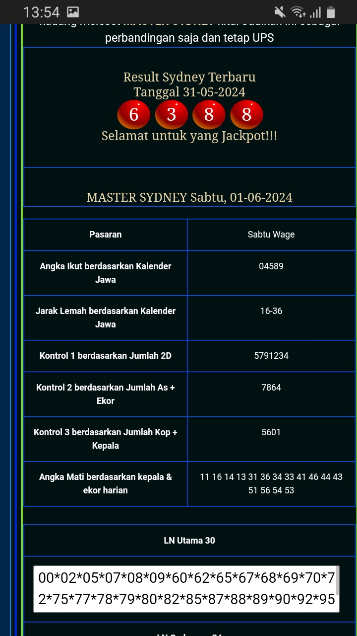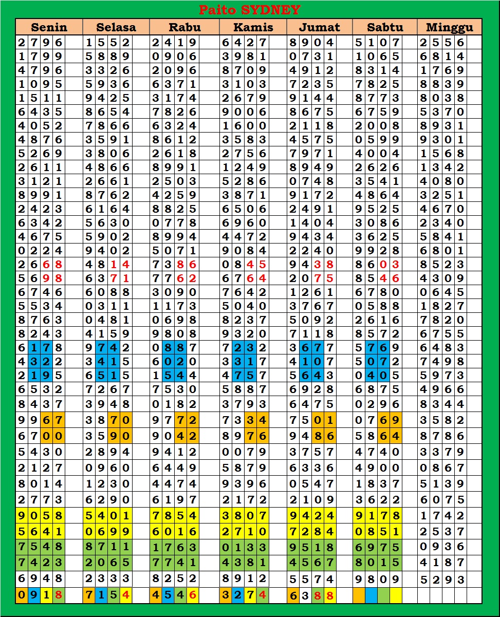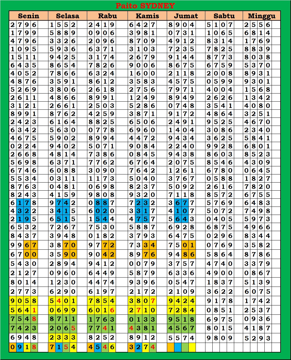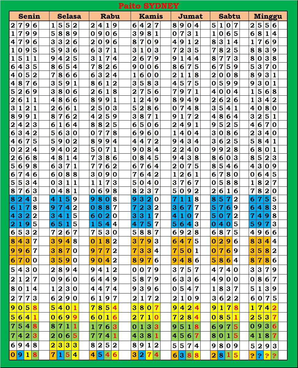 MASTER SYDNEY Sabtu, 04-10-2025 Merupakan Prediksi Otomatis yang menggabungkan Metode Kalender Togel Dengan Rumus-rumus kontrol yang sudah terbukti keakuratanya.Gunakan Aplikasi Rekap untuk mendapatkan LN TOP. Harap Maklum Jika kadang meleset MASTER SYDNEY kita. Jadikan ini sebagai perbandingan saja dan tetap UPS