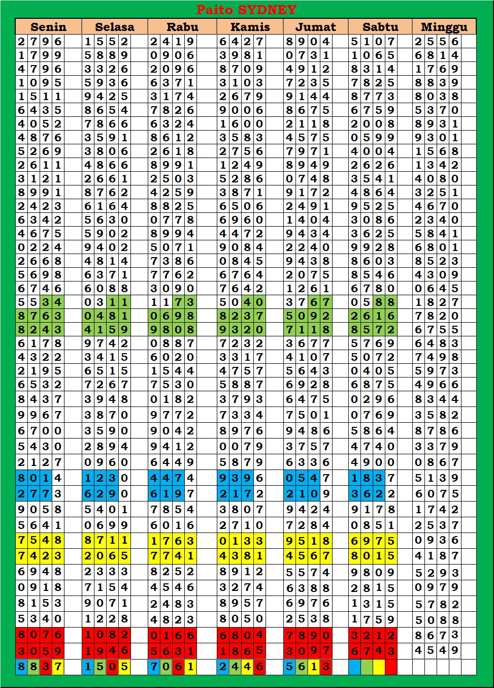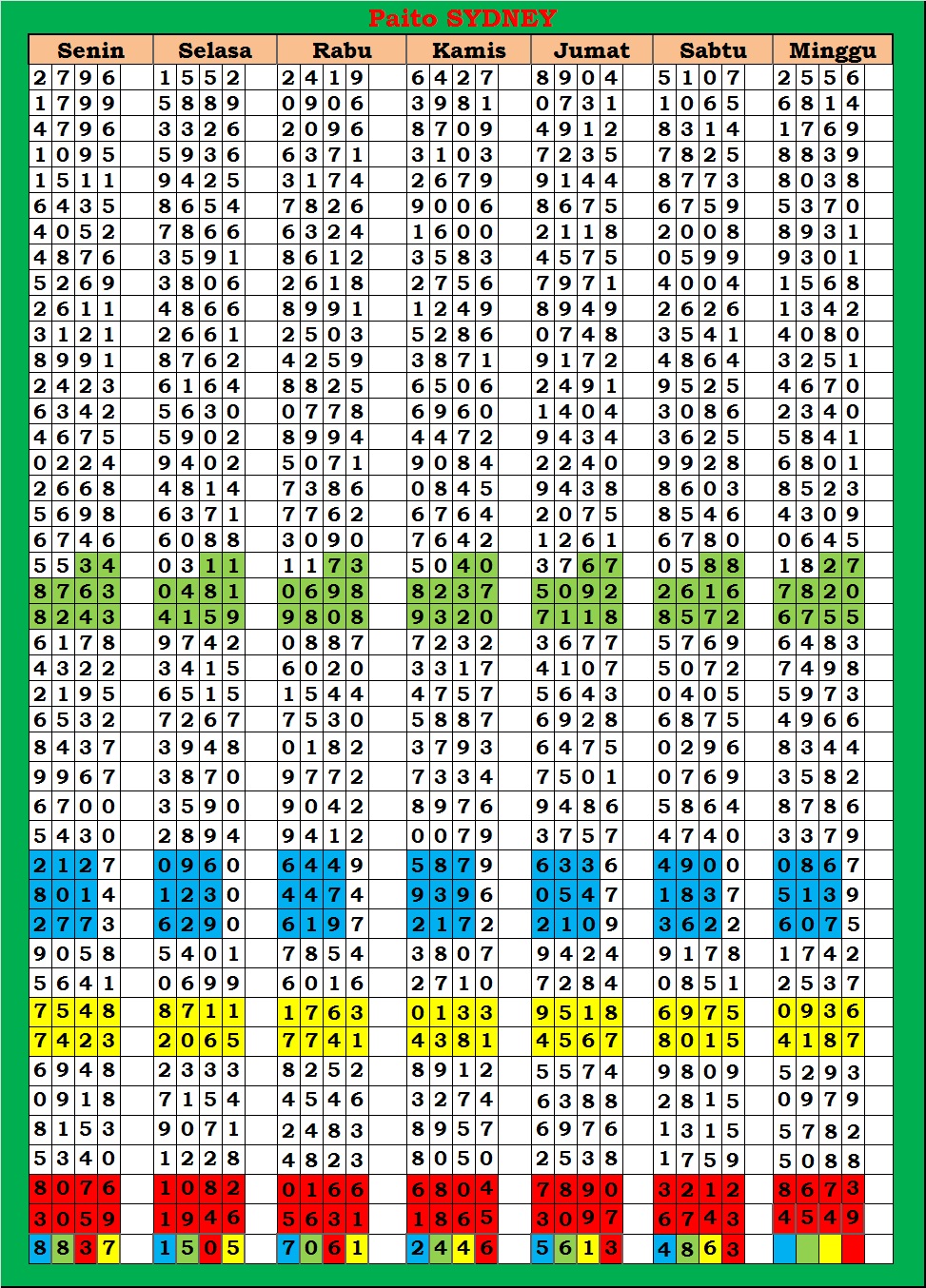 MASTER SYDNEY Jumat, 03-10-2025 Merupakan Prediksi Otomatis yang menggabungkan Metode Kalender Togel Dengan Rumus-rumus kontrol yang sudah terbukti keakuratanya.Gunakan Aplikasi Rekap untuk mendapatkan LN TOP. Harap Maklum Jika kadang meleset MASTER SYDNEY kita. Jadikan ini sebagai perbandingan saja dan tetap UPS