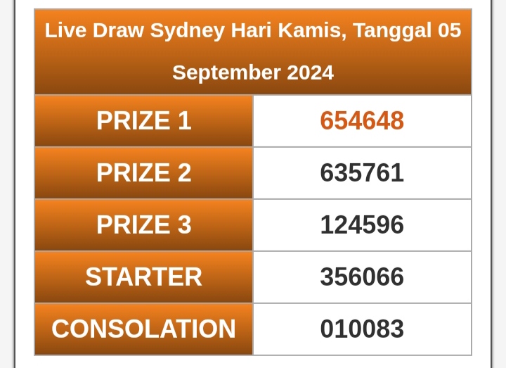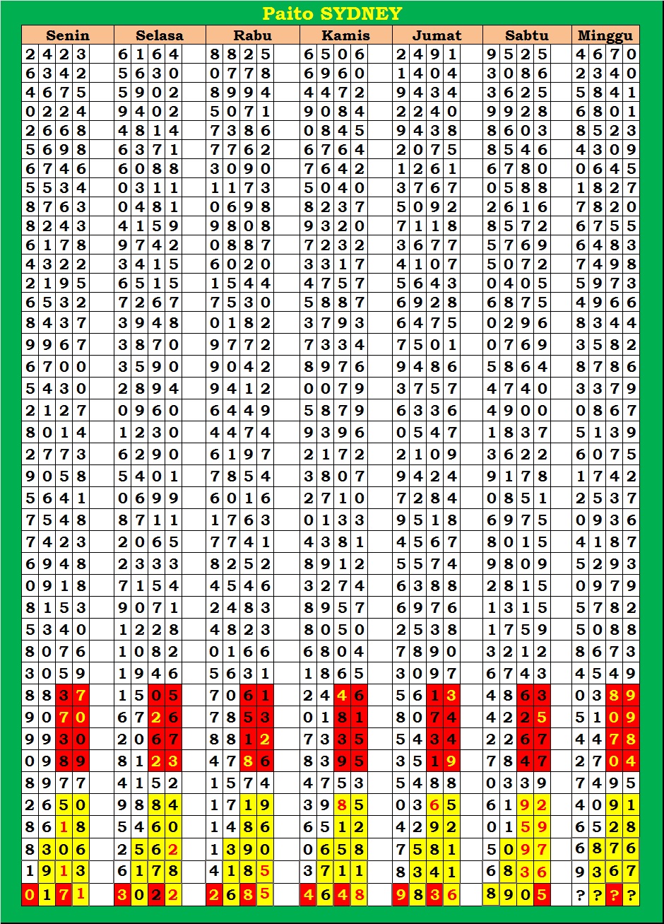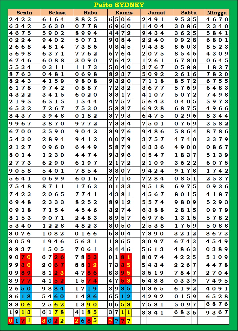 MASTER SYDNEY Jumat, 03-10-2025 Merupakan Prediksi Otomatis yang menggabungkan Metode Kalender Togel Dengan Rumus-rumus kontrol yang sudah terbukti keakuratanya.Gunakan Aplikasi Rekap untuk mendapatkan LN TOP. Harap Maklum Jika kadang meleset MASTER SYDNEY kita. Jadikan ini sebagai perbandingan saja dan tetap UPS