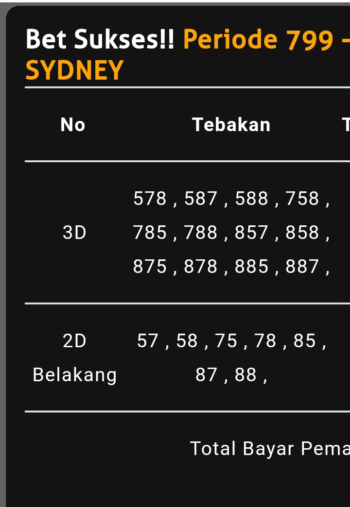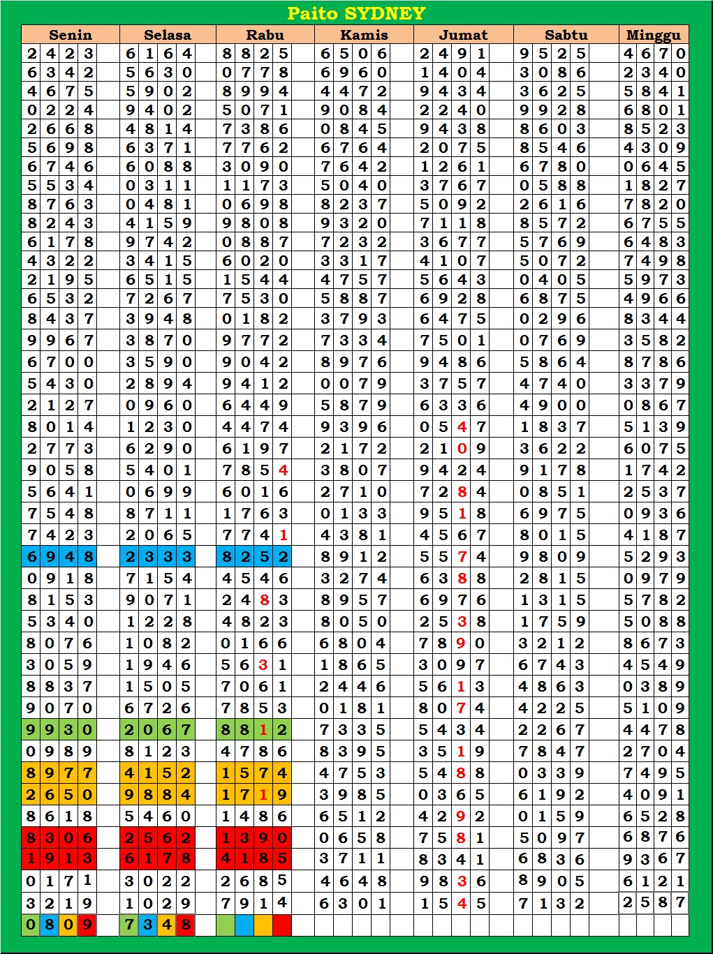 MASTER SYDNEY Jumat, 03-10-2025 Merupakan Prediksi Otomatis yang menggabungkan Metode Kalender Togel Dengan Rumus-rumus kontrol yang sudah terbukti keakuratanya.Gunakan Aplikasi Rekap untuk mendapatkan LN TOP. Harap Maklum Jika kadang meleset MASTER SYDNEY kita. Jadikan ini sebagai perbandingan saja dan tetap UPS