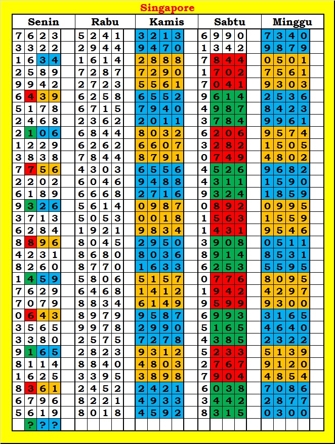 MASTER SINGAPURA Rabu, 08-10-2025 Merupakan Prediksi Otomatis yang menggabungkan Metode Kalender Togel Dengan Rumus-rumus kontrol yang sudah terbukti keakuratanya.Gunakan Aplikasi Rekap untuk mendapatkan LN TOP. Harap Maklum Jika kadang meleset MASTER SINGAPURA kita. Jadikan ini sebagai perbandingan saja dan tetap UPS