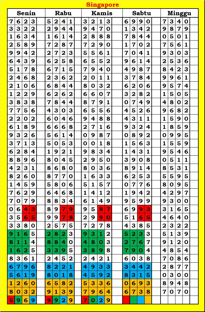 MASTER SINGAPURA Rabu, 08-10-2025 Merupakan Prediksi Otomatis yang menggabungkan Metode Kalender Togel Dengan Rumus-rumus kontrol yang sudah terbukti keakuratanya.Gunakan Aplikasi Rekap untuk mendapatkan LN TOP. Harap Maklum Jika kadang meleset MASTER SINGAPURA kita. Jadikan ini sebagai perbandingan saja dan tetap UPS