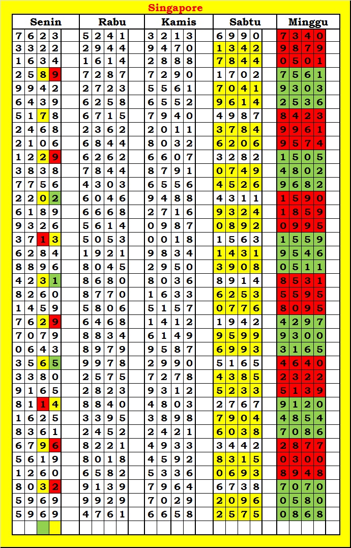 MASTER SINGAPURA Rabu, 08-10-2025 Merupakan Prediksi Otomatis yang menggabungkan Metode Kalender Togel Dengan Rumus-rumus kontrol yang sudah terbukti keakuratanya.Gunakan Aplikasi Rekap untuk mendapatkan LN TOP. Harap Maklum Jika kadang meleset MASTER SINGAPURA kita. Jadikan ini sebagai perbandingan saja dan tetap UPS