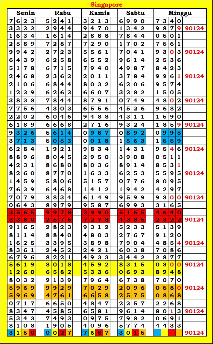 MASTER SINGAPURA Rabu, 08-10-2025 Merupakan Prediksi Otomatis yang menggabungkan Metode Kalender Togel Dengan Rumus-rumus kontrol yang sudah terbukti keakuratanya.Gunakan Aplikasi Rekap untuk mendapatkan LN TOP. Harap Maklum Jika kadang meleset MASTER SINGAPURA kita. Jadikan ini sebagai perbandingan saja dan tetap UPS