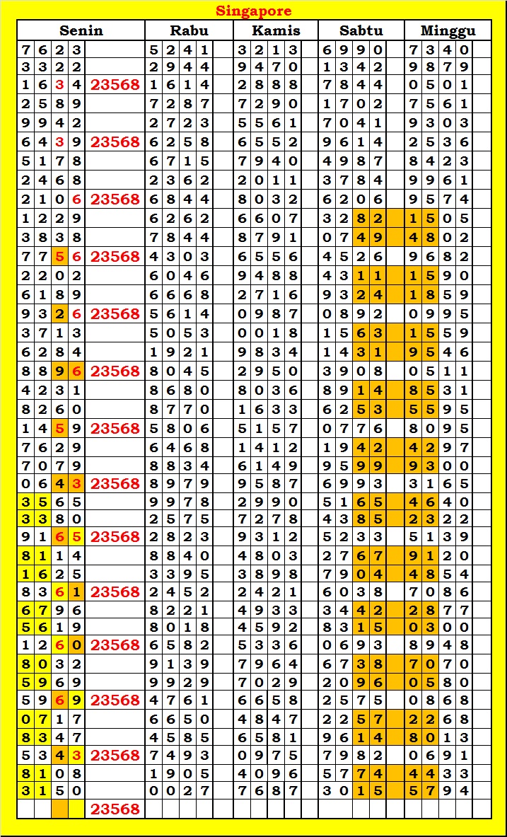 MASTER SINGAPURA Senin, 06-10-2025 Merupakan Prediksi Otomatis yang menggabungkan Metode Kalender Togel Dengan Rumus-rumus kontrol yang sudah terbukti keakuratanya.Gunakan Aplikasi Rekap untuk mendapatkan LN TOP. Harap Maklum Jika kadang meleset MASTER SINGAPURA kita. Jadikan ini sebagai perbandingan saja dan tetap UPS