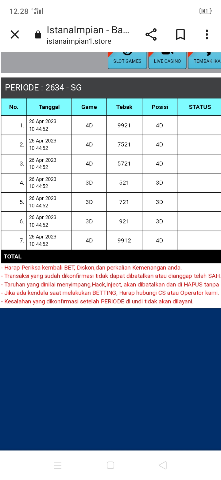 semua postingan komentar SARA, politik, saling menghujat serta saling merendahkan antara prediktor satu dengan yang lainnya jika kami lagi OL mohon maaf langsung kami hapus dan jika telah diperingatkan masih mengulang kami lock datanya