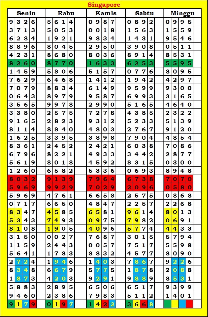 MASTER SINGAPURA Minggu, 05-10-2025 Merupakan Prediksi Otomatis yang menggabungkan Metode Kalender Togel Dengan Rumus-rumus kontrol yang sudah terbukti keakuratanya.Gunakan Aplikasi Rekap untuk mendapatkan LN TOP. Harap Maklum Jika kadang meleset MASTER SINGAPURA kita. Jadikan ini sebagai perbandingan saja dan tetap UPS