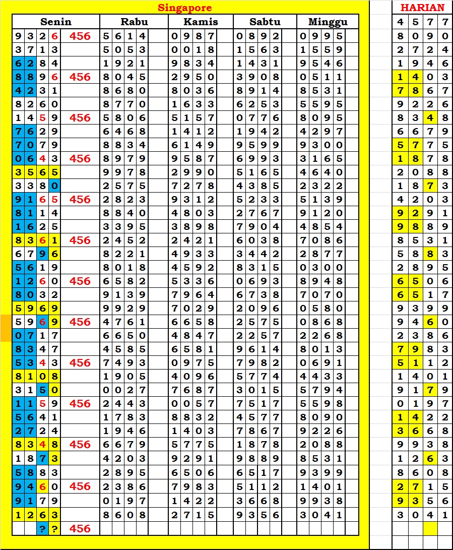 MASTER SINGAPURA Minggu, 05-10-2025 Merupakan Prediksi Otomatis yang menggabungkan Metode Kalender Togel Dengan Rumus-rumus kontrol yang sudah terbukti keakuratanya.Gunakan Aplikasi Rekap untuk mendapatkan LN TOP. Harap Maklum Jika kadang meleset MASTER SINGAPURA kita. Jadikan ini sebagai perbandingan saja dan tetap UPS