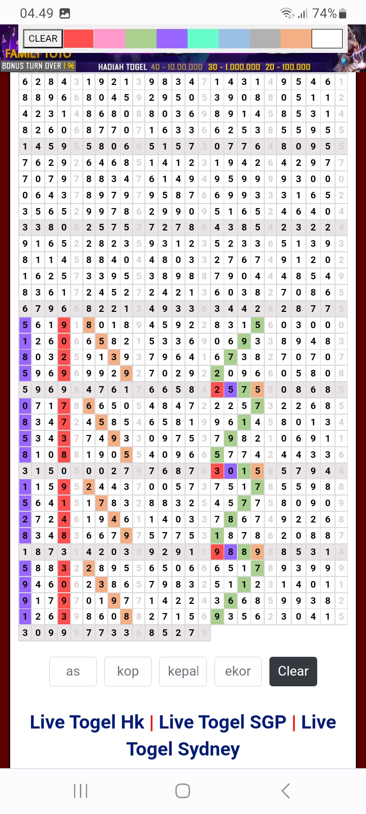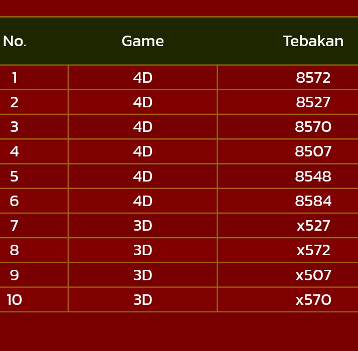 Prediksi Ini Berubah secara otomatis sesuai hari dan result pasaran masing-masing. Untuk melihat prediksi sebelumnya klik tombol nomor hitam diatas